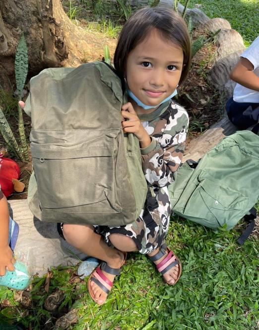 Kindergarten kids. Out of the 380 bags, 65 were made from upcycled materials and exclusively given to the Kindergarten classes.