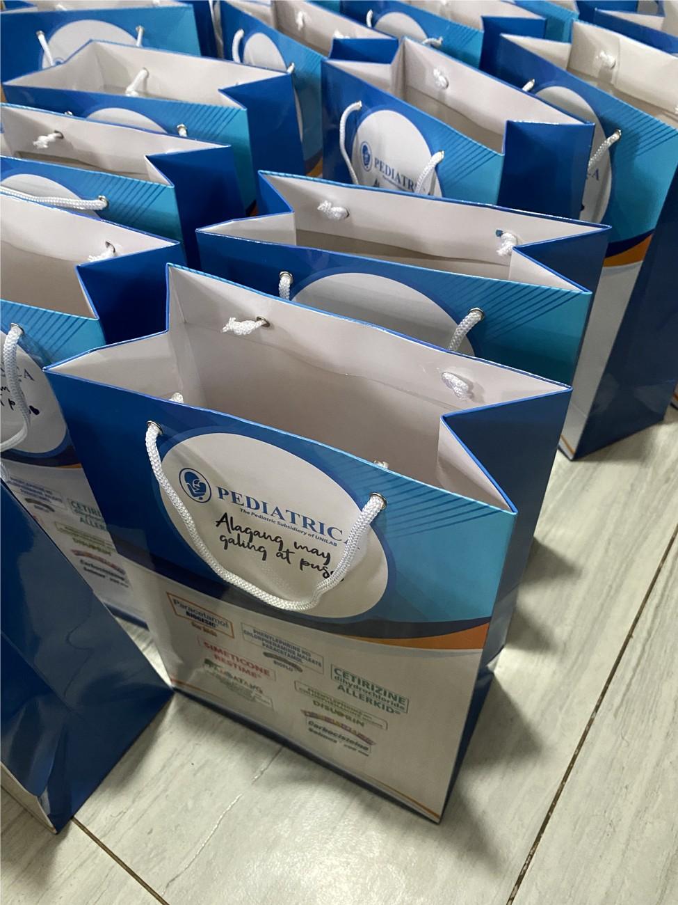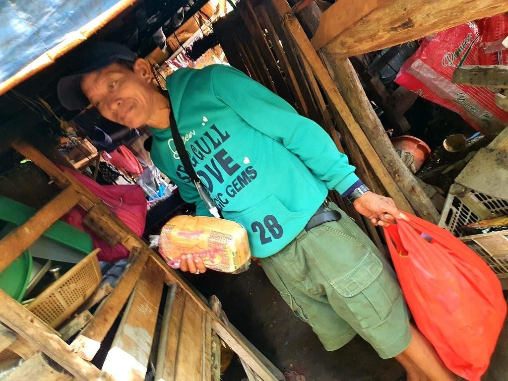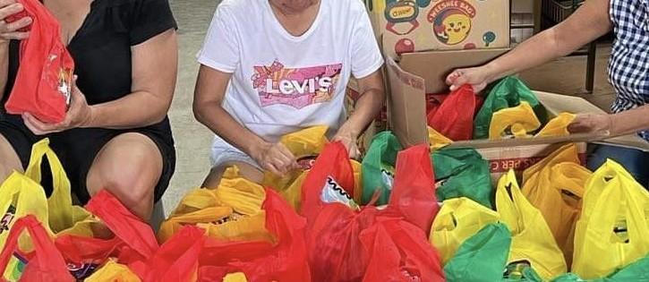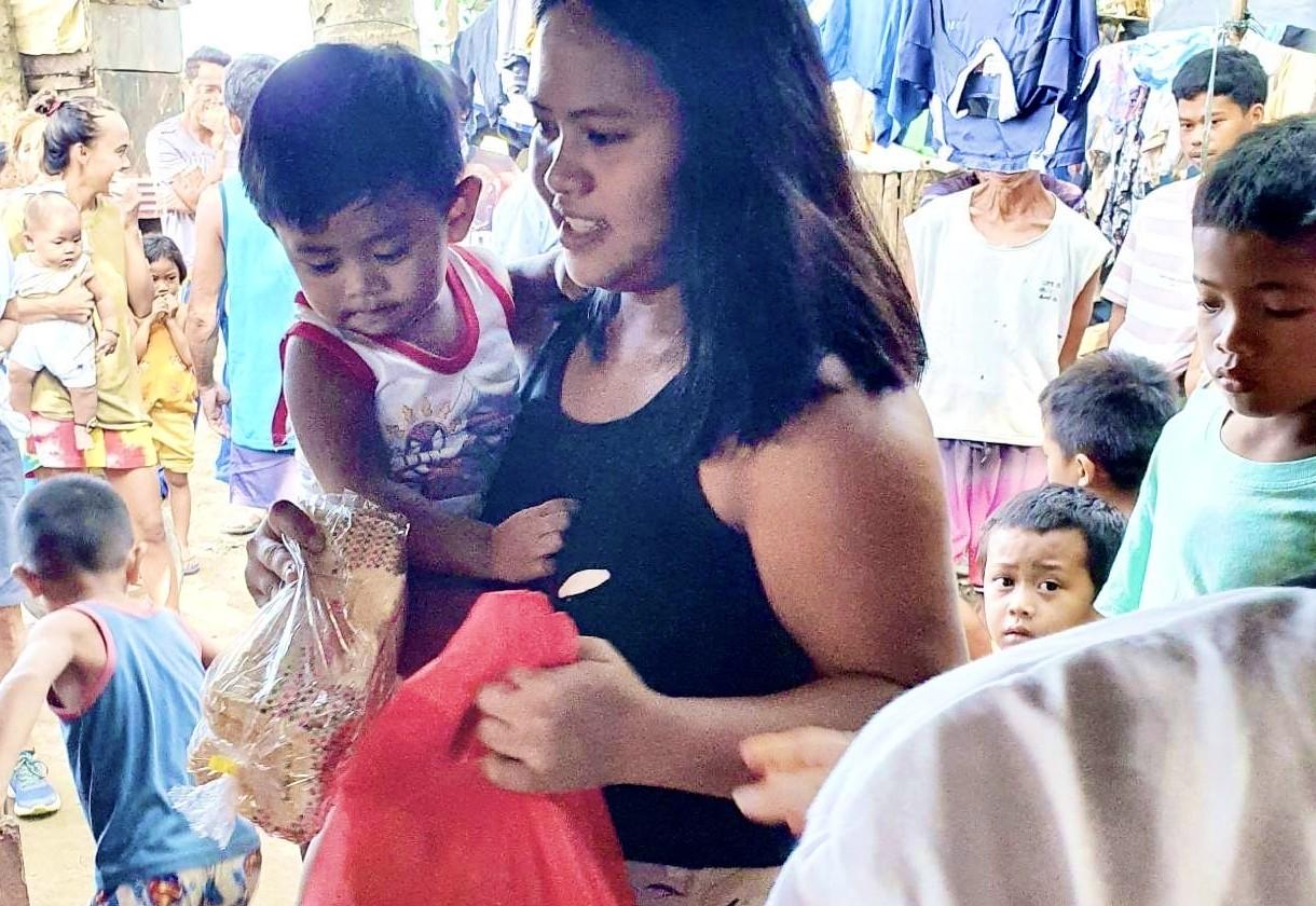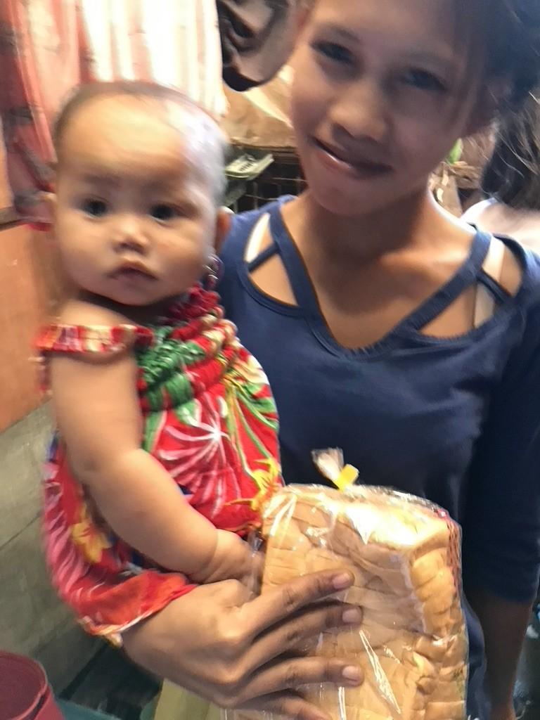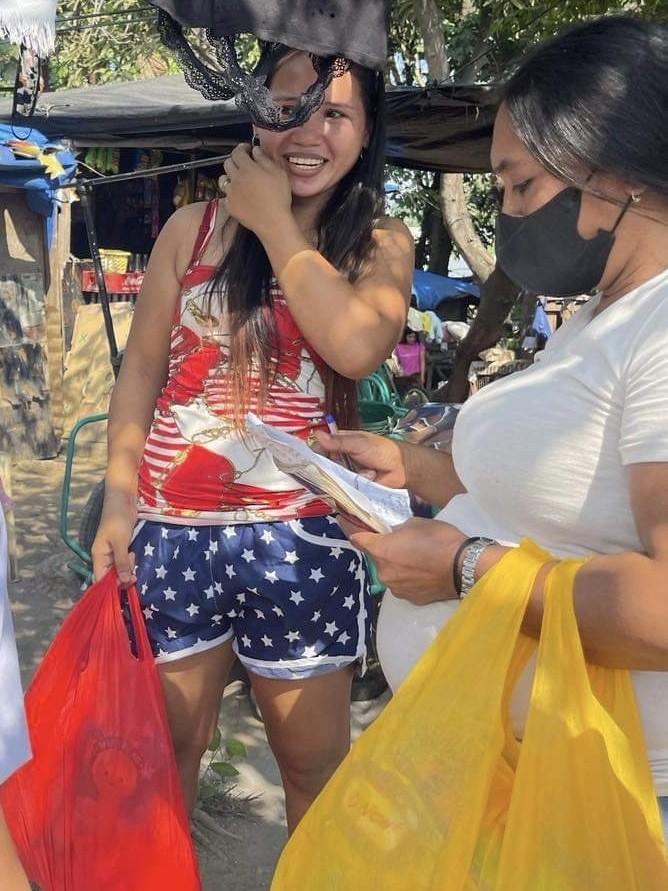 The Noche Buena Bag contained the basic spaghetti pack of pasta, sauce and cheese. It had a large loaf of bread, three kilos of rice, beverages in sachets of three-inone coffee and Milo chocolate drink. Oishi chips and biscuits were included for the kids. Loot bags of vitamins from Unilab were also included in the bag. A total of 222 Noche Buena bags were prepared.