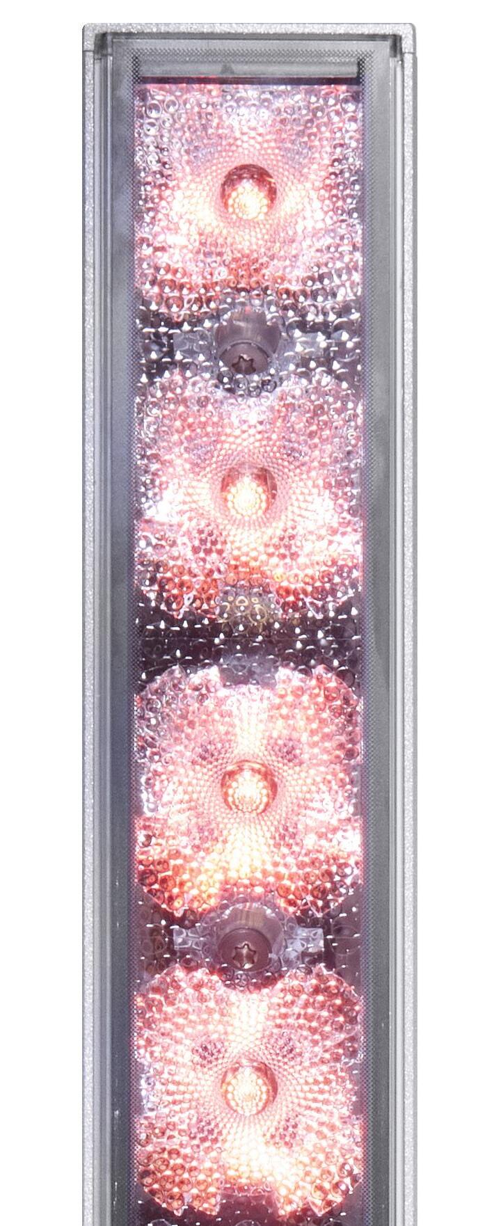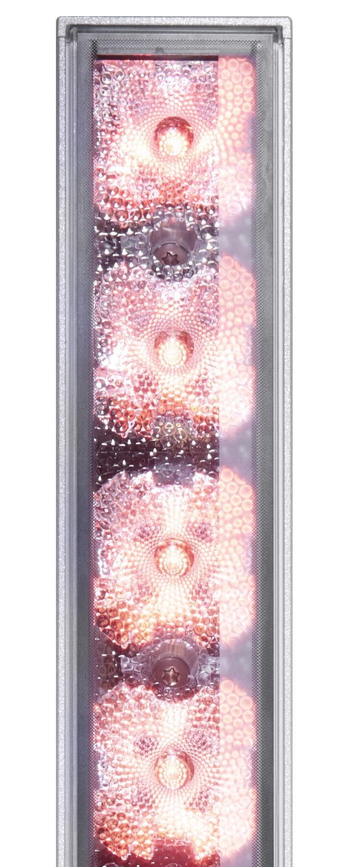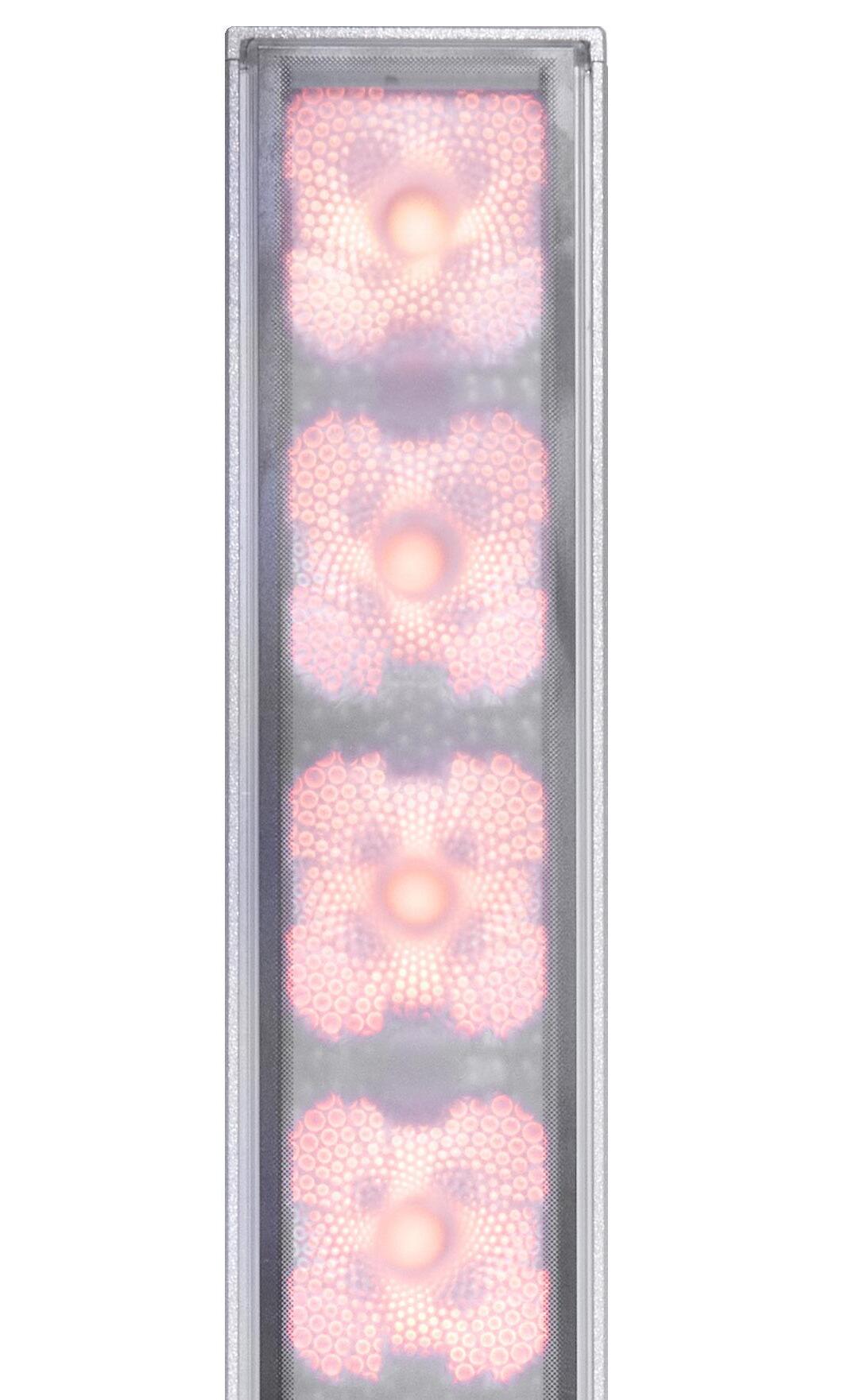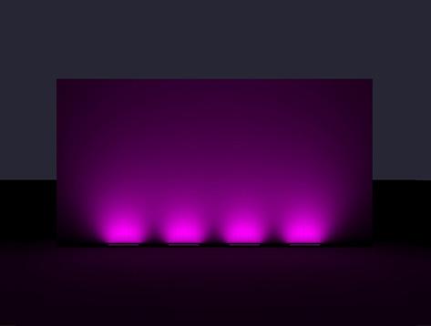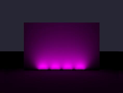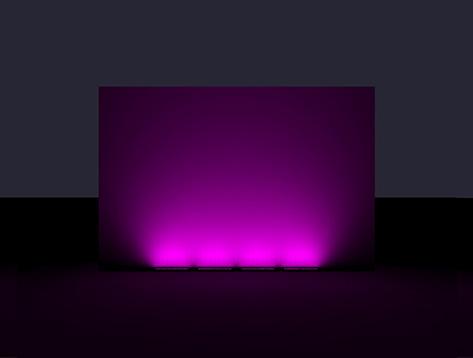Real images of fixture, RGBW all on. Setback: 100mm from black wall.