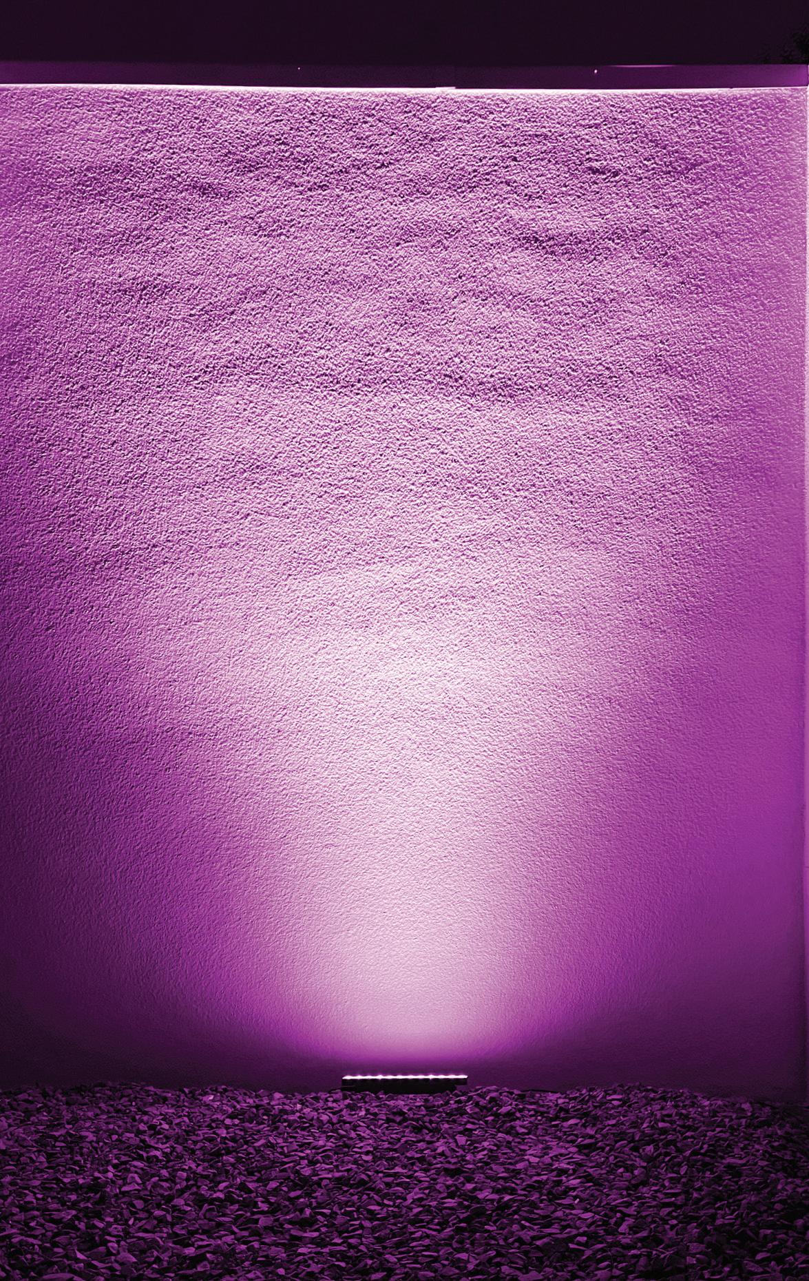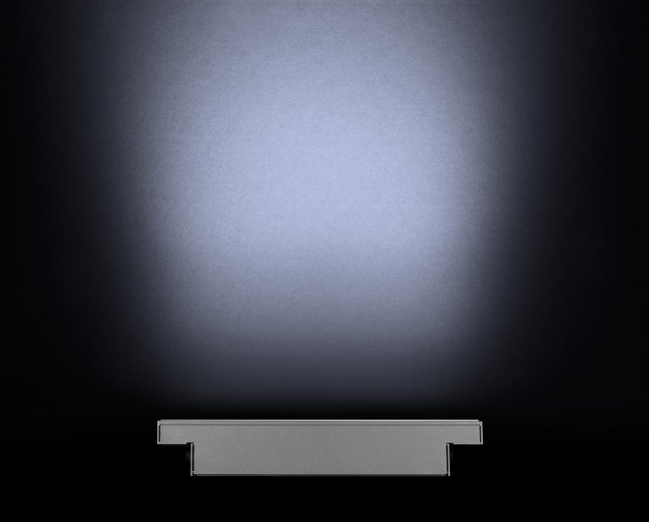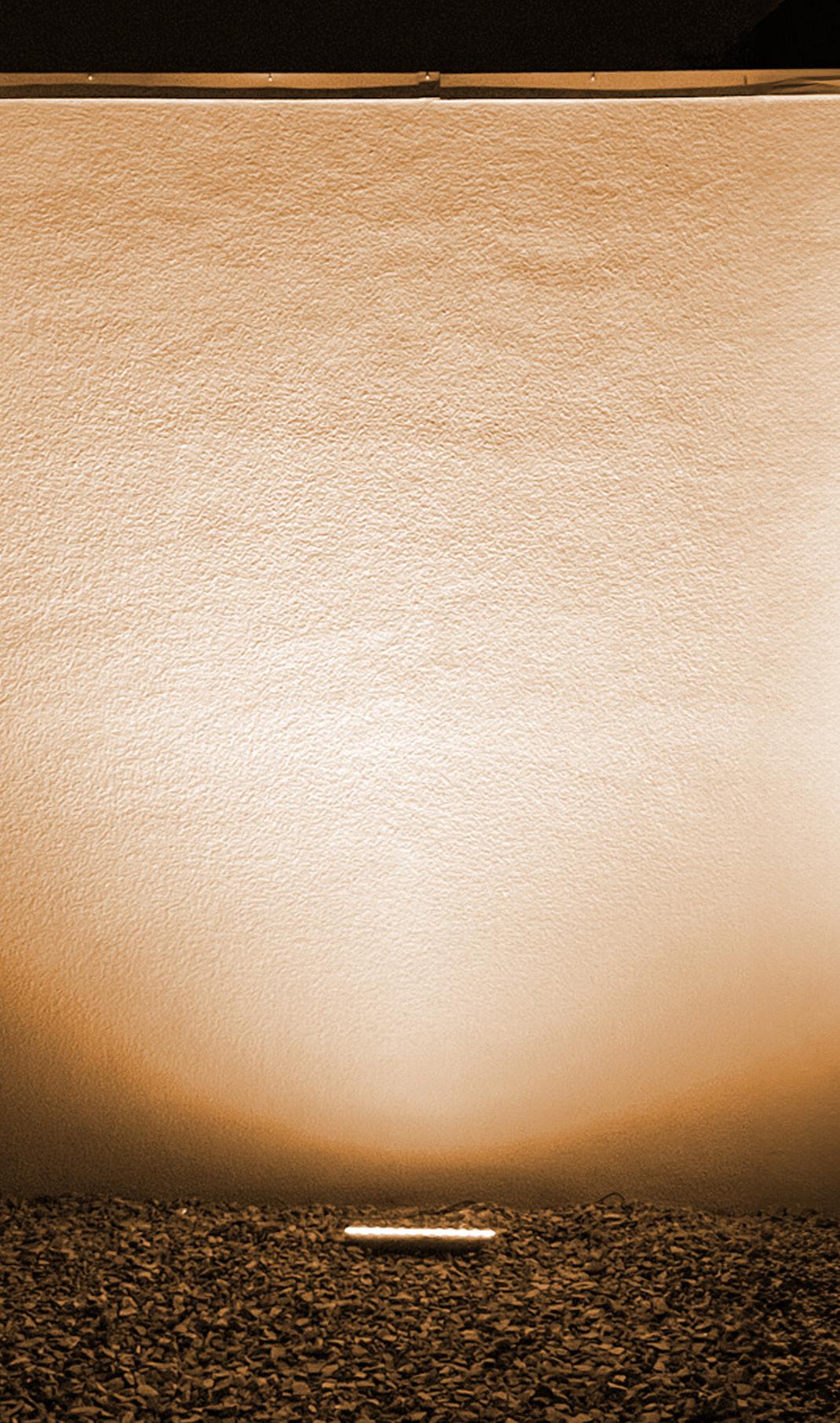 Wallwashing uses vertical, indirect lighting, which has been placed at an optimal distance and angle from a wall, to create a smooth "wash" effect. Wallwashing is often used to hide rough imperfections, eliminate shadows, and uniformly light up a wall. The Lumenfacade Max has the optics needed to create a clean, impressive wallwash on any number of surfaces and surface heights.