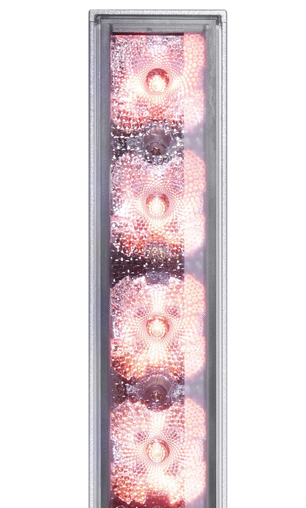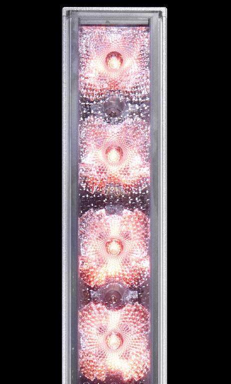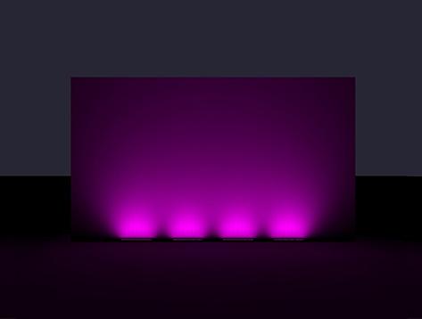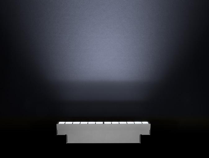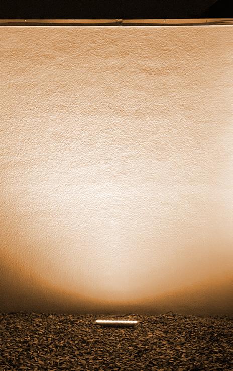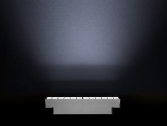 L'éclairage lèche-mur, dit « wallwash », utilise un éclairage vertical indirect, placé à une distance et un angle optimaux par rapport à un mur, pour créer un effet doux et uniforme. L'éclairage wallwash est souvent utilisé pour masquer les imperfections grossières, éliminer les ombres et éclairer un mur uniformément. Le Lumenfacade Max possède l'optique nécessaire pour créer un effet propre et impressionnant sur un grand nombre de surfaces et de hauteurs de surface.