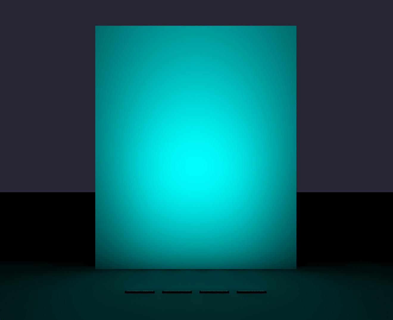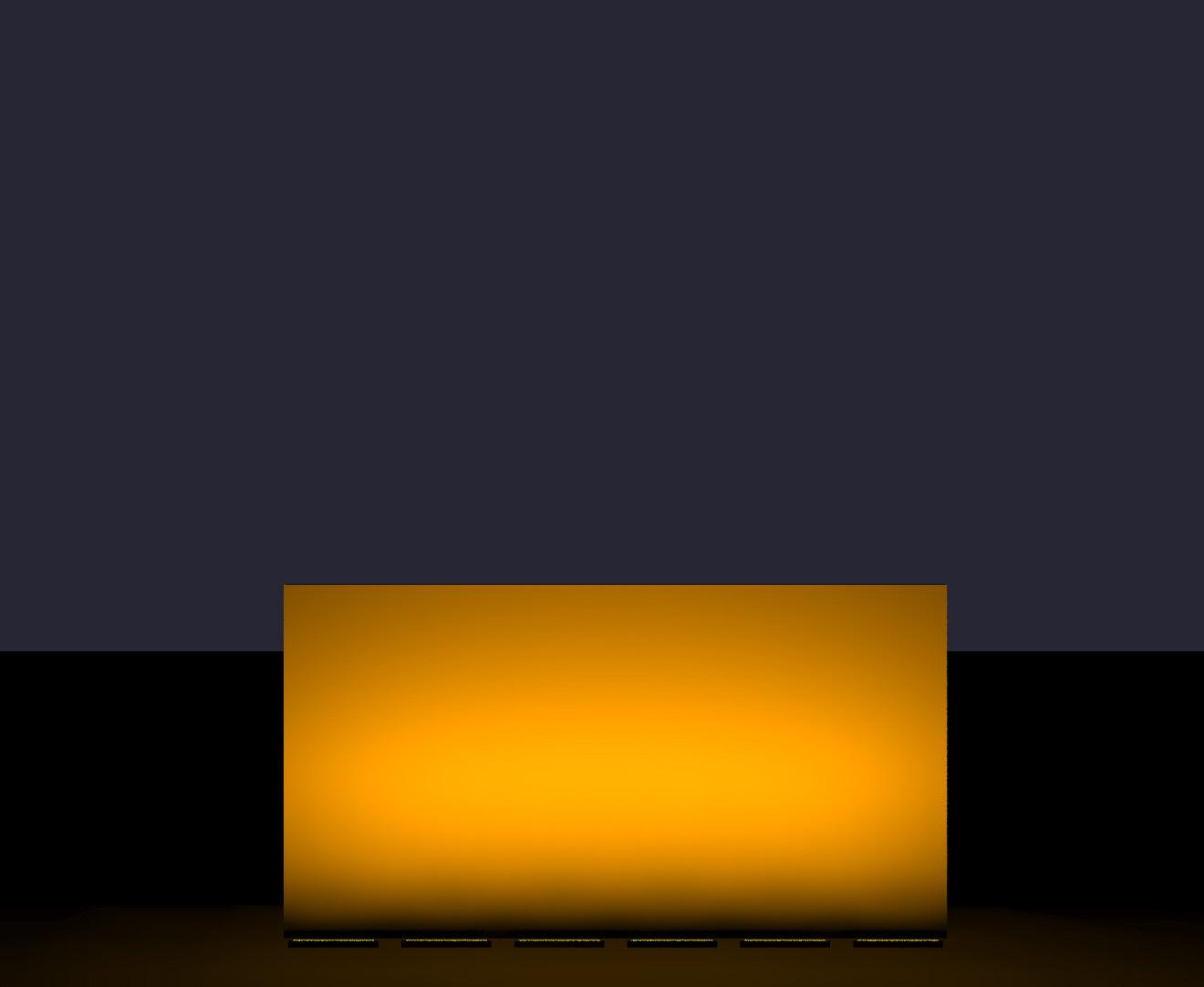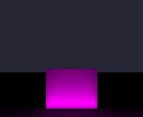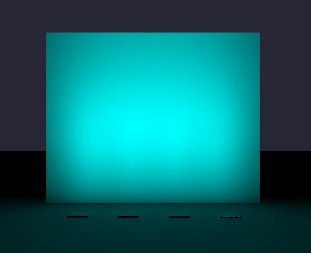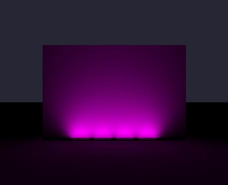 Véritables photos de l'appareil, allumé en mode RGBW. Recul : 100mm d'un mur noir.