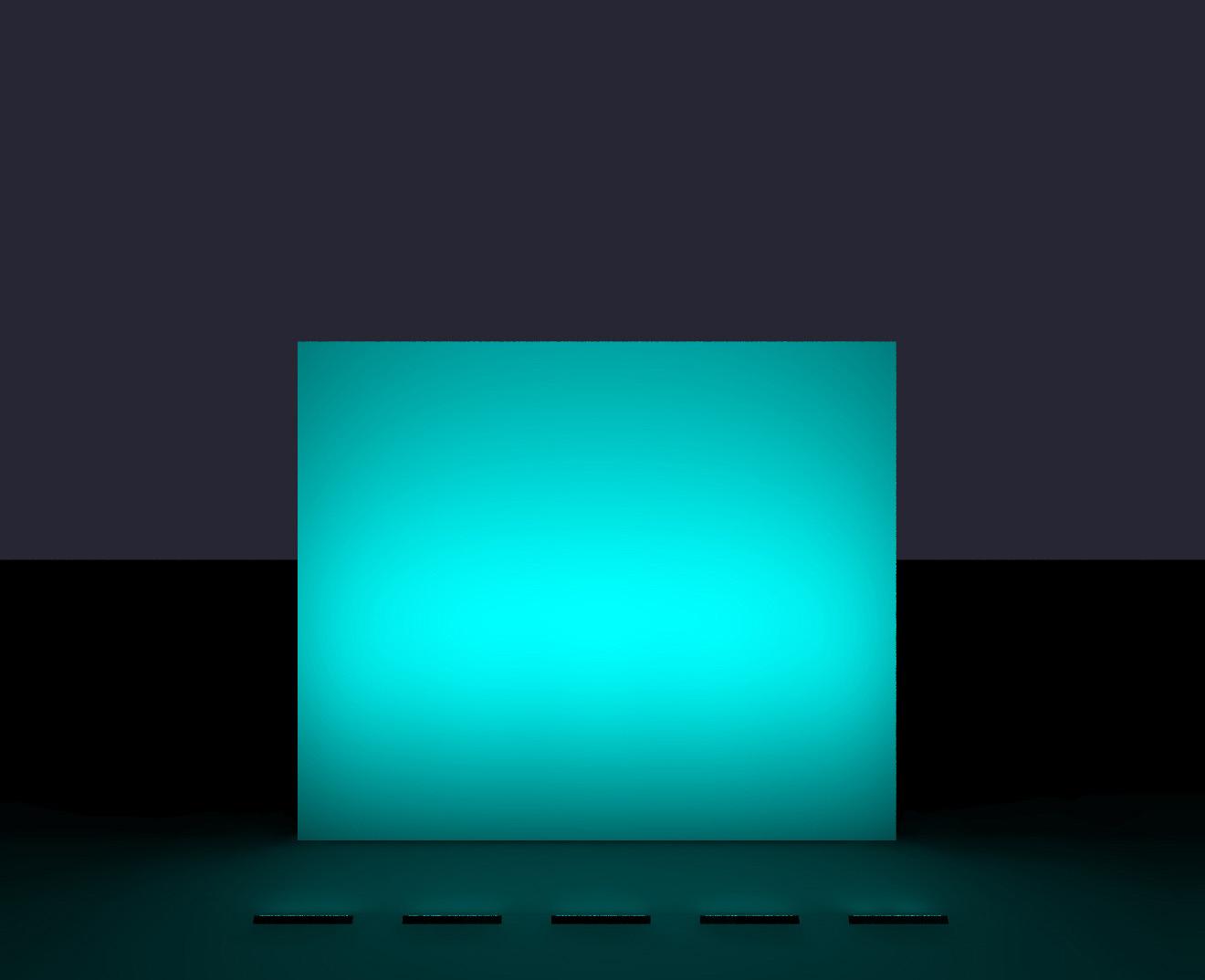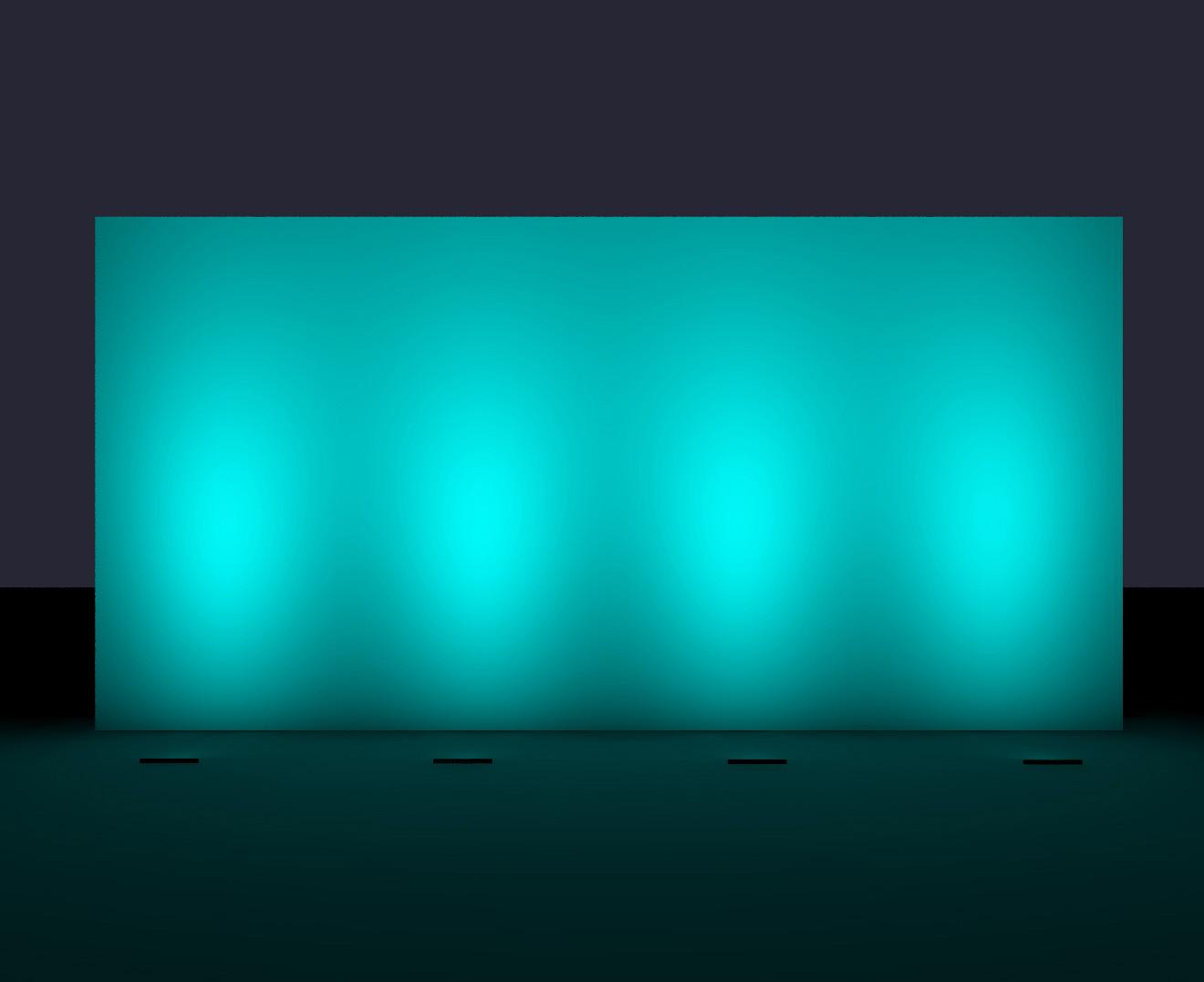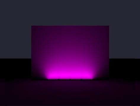 Real images of fixture, RGBW all on. Setback: 4" from black wall.
