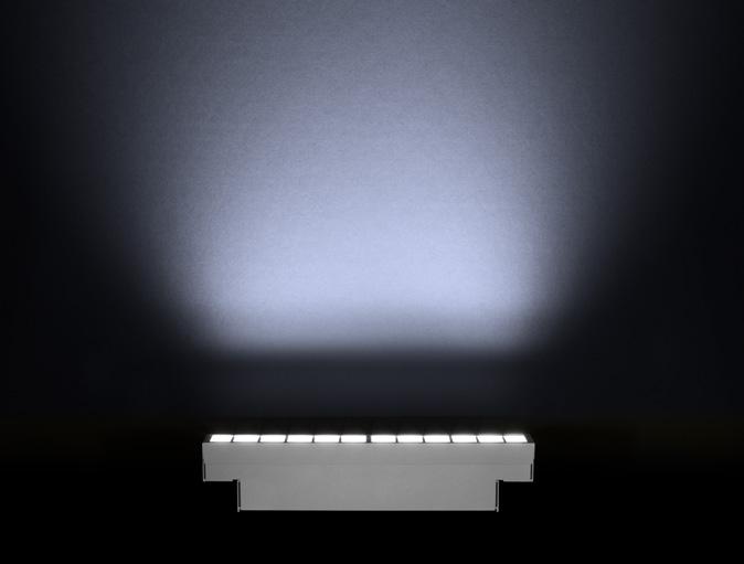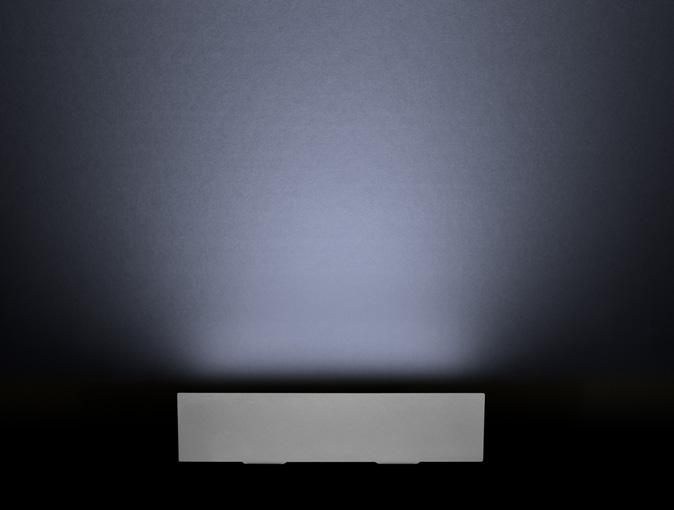 Wallwashing uses vertical, indirect lighting, which has been placed at an optimal distance and angle from a wall, to create a smooth "wash" effect. Wallwashing is often used to hide rough imperfections, eliminate shadows, and uniformly light up a wall. The Lumenfacade Max has the optics needed to create a clean, impressive wallwash on any number of surfaces and surface heights.