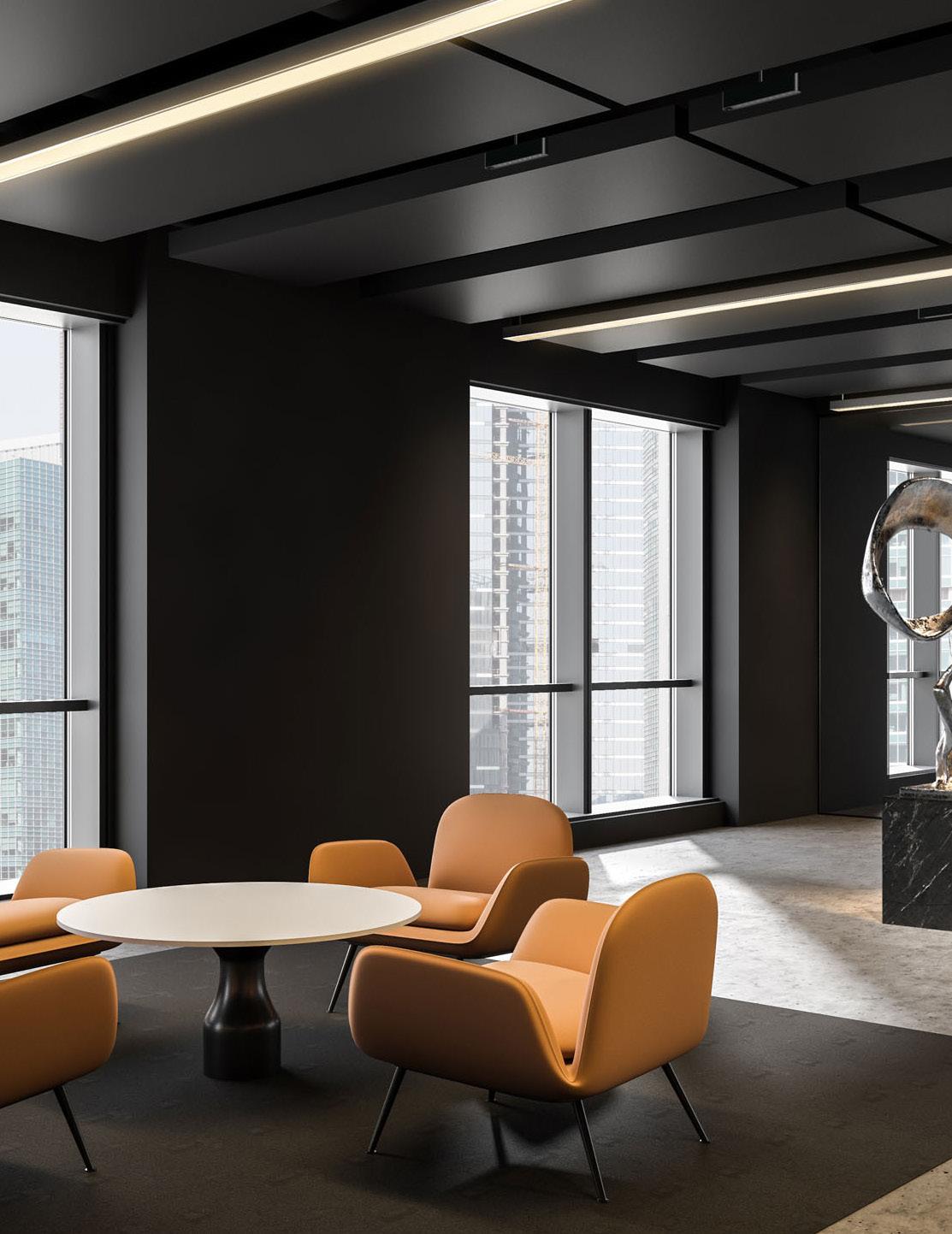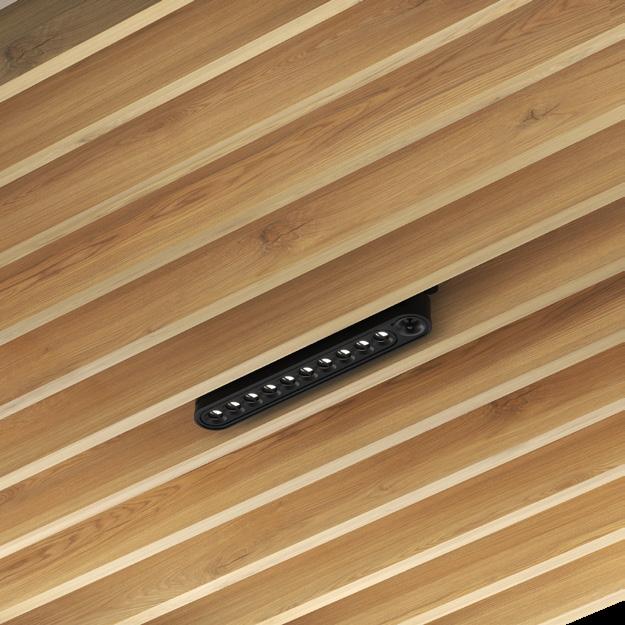 Harmoniously integrates into architecturally designed slat ceilings featuring enhanced control, precise optics, an adaptive glare baffle, and advanced anti-reflective materials for minimal glare.