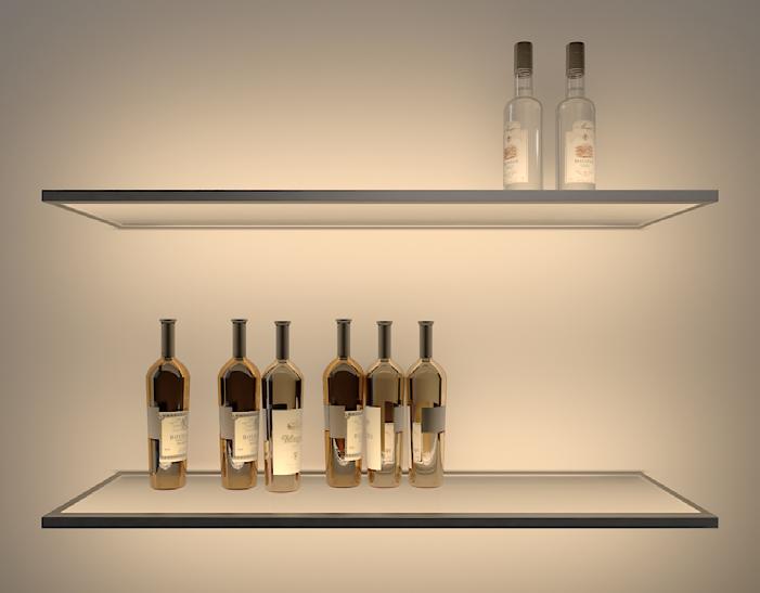 Perfect for kitchens and bars. Best to reinforce illusion of the floating shelves. (Shelf itself is not illuminated) FLOATING BACK WALL