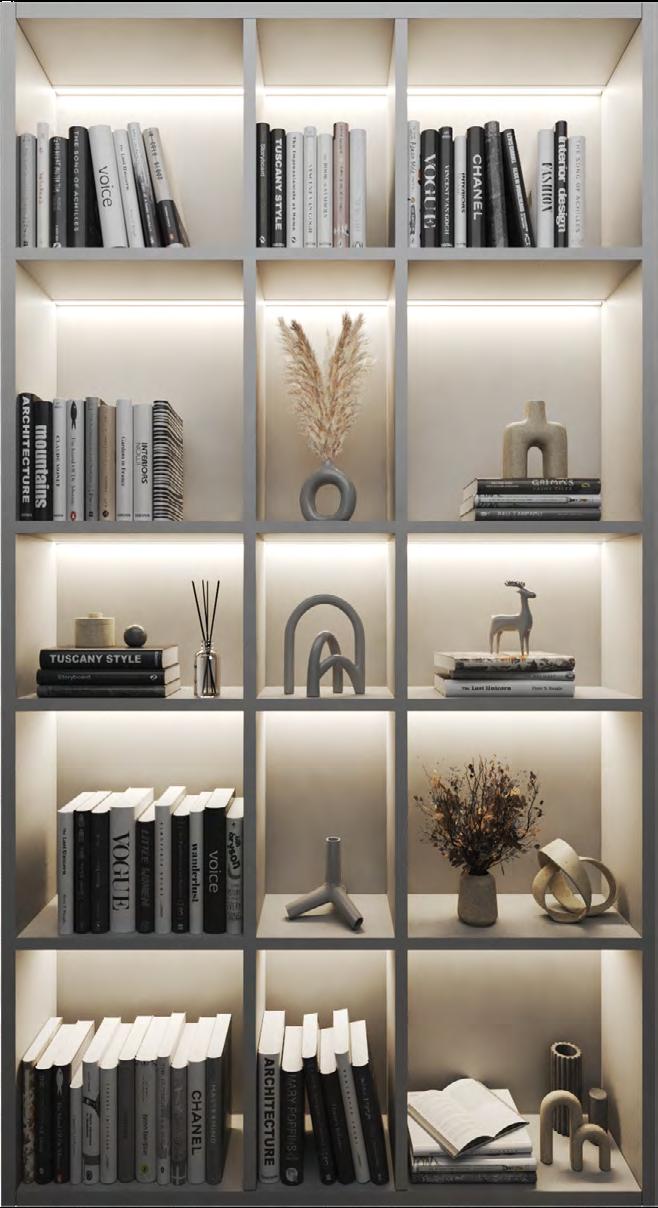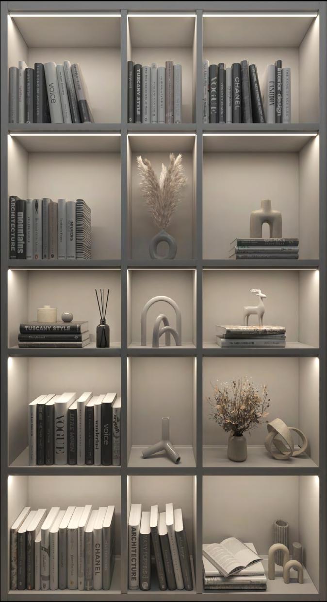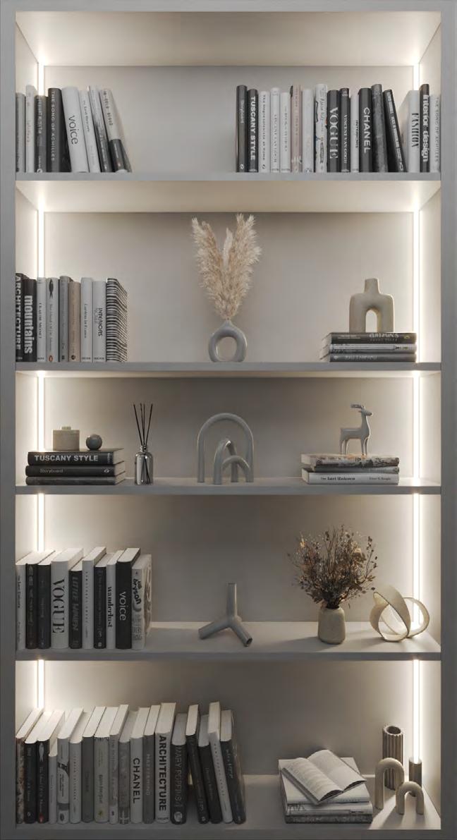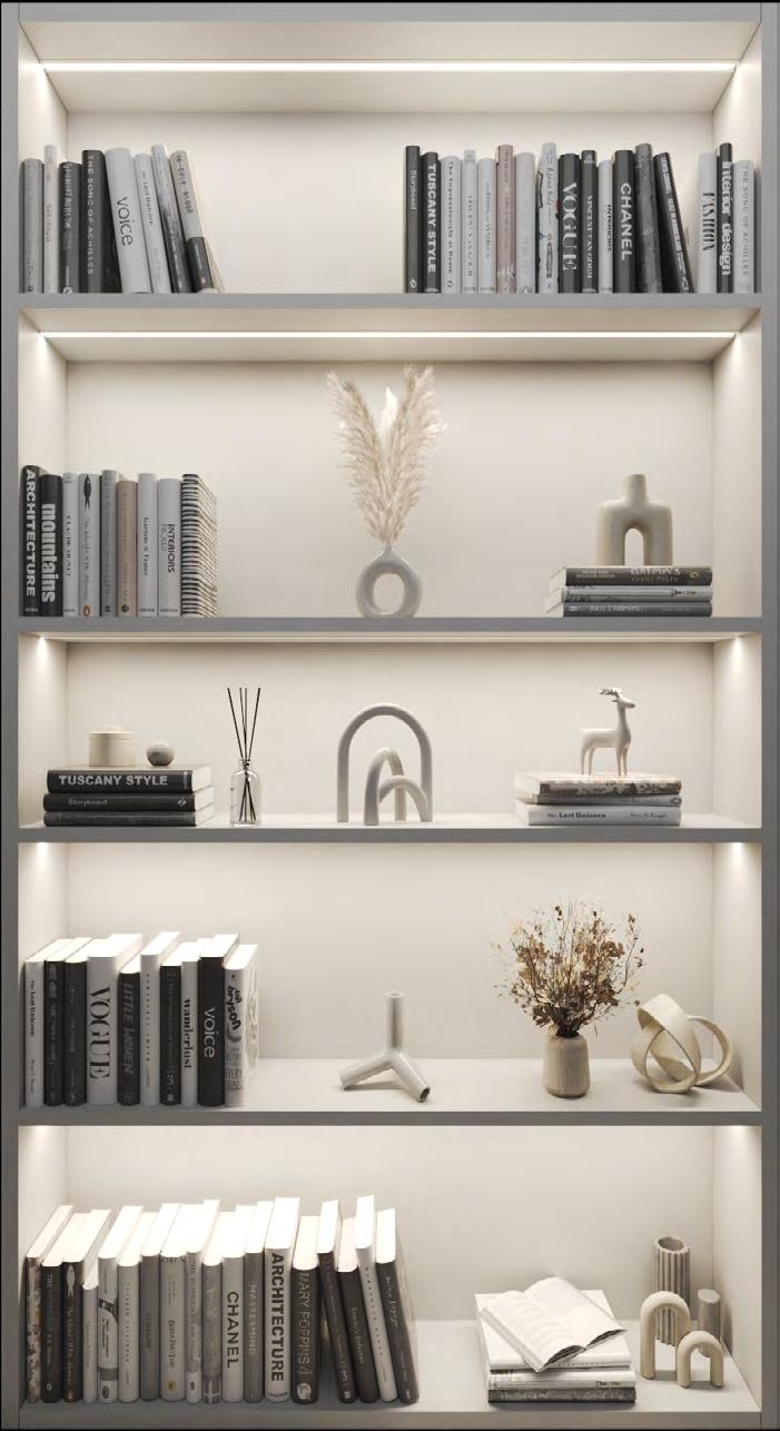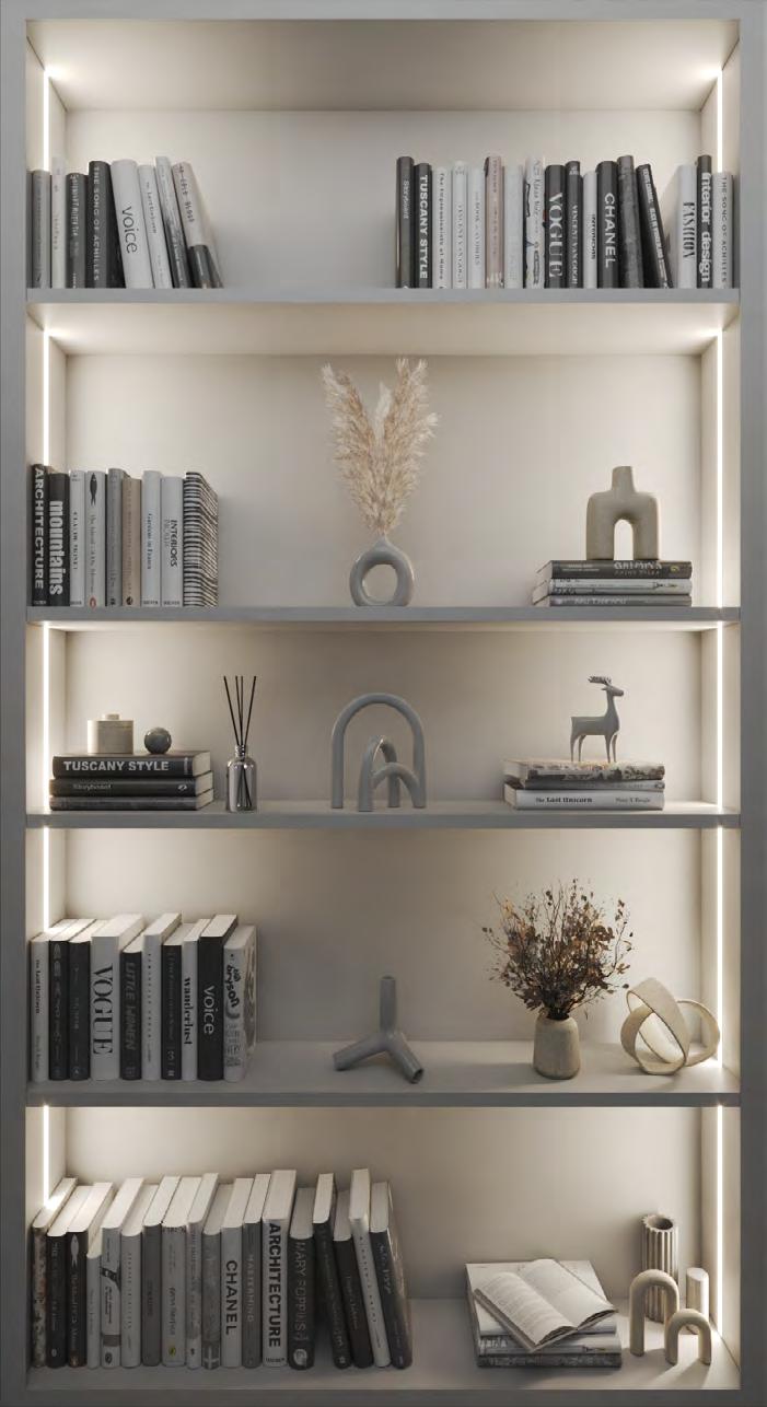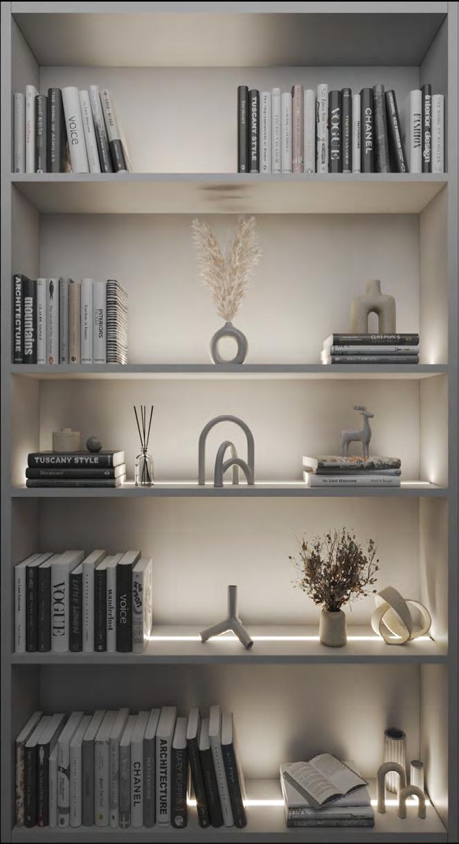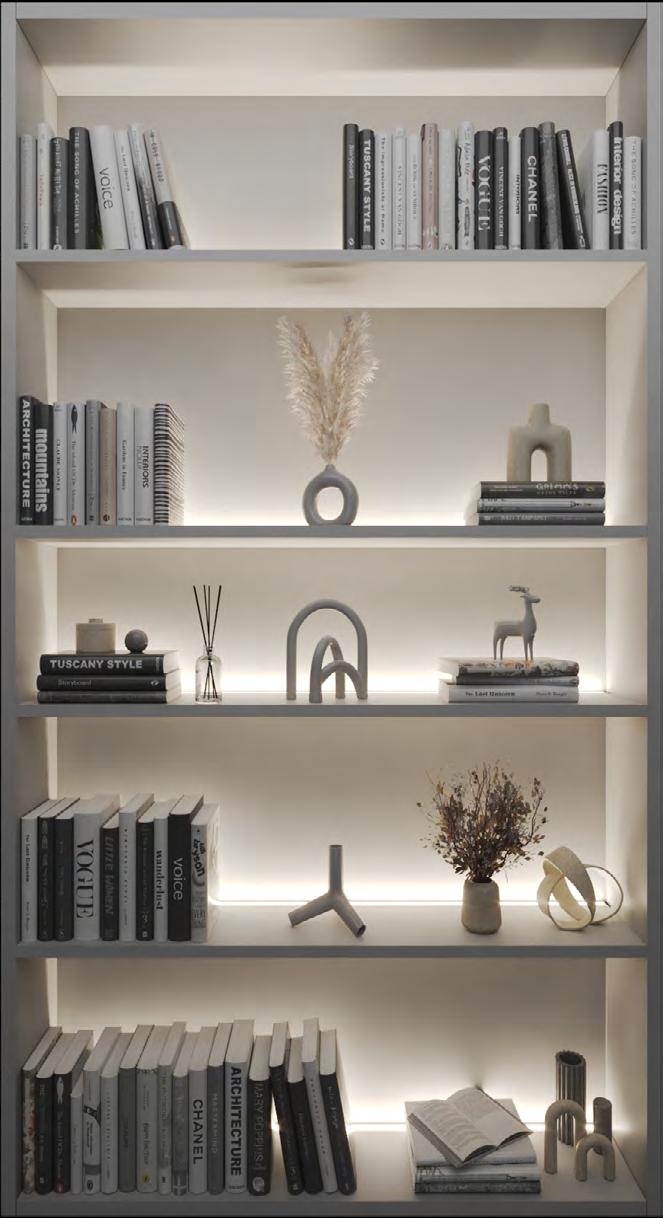 This guide introduces lighting details ideal for both integrated casework and floating shelves. When designing millwork lighting, layering is key—though a single layer may suffice, certain applications benefit from a second to enhance visibility and highlight objects or finishes, depending on how the shelves are styled and furnished.