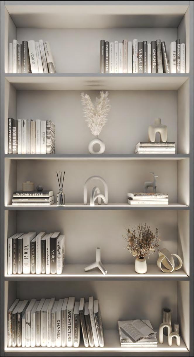 RENDER - SURFACE AND RECESSED “Center Vertical” details are great for walk-in closets and entertainment displays.