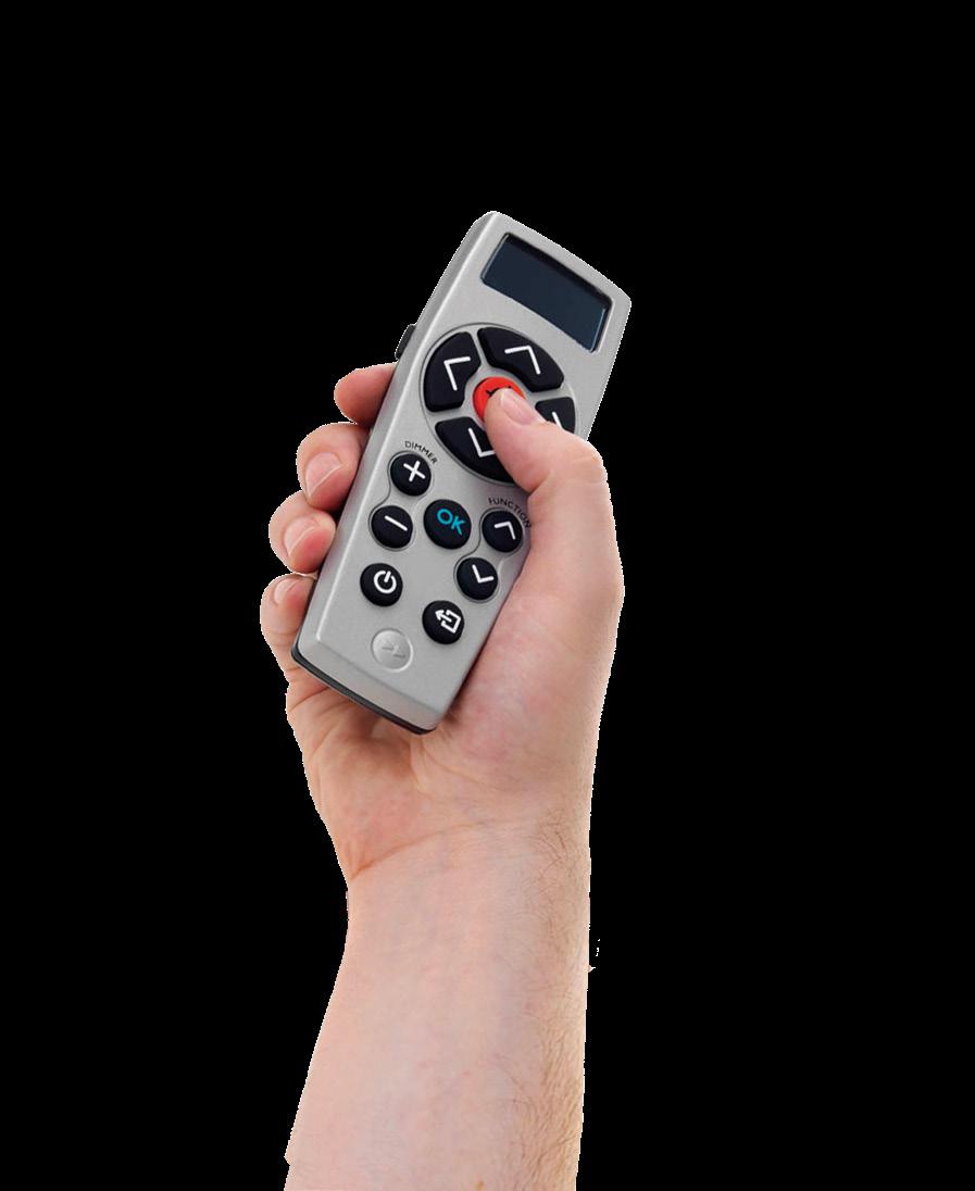 2. Once the luminaire has been selected, colour temperature, beam width, dim level and beam positioning can be altered using the remote.