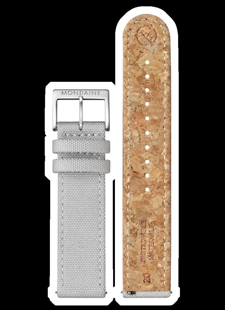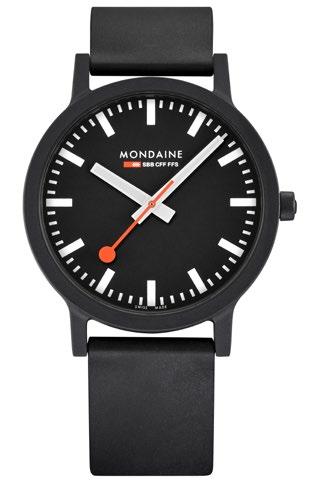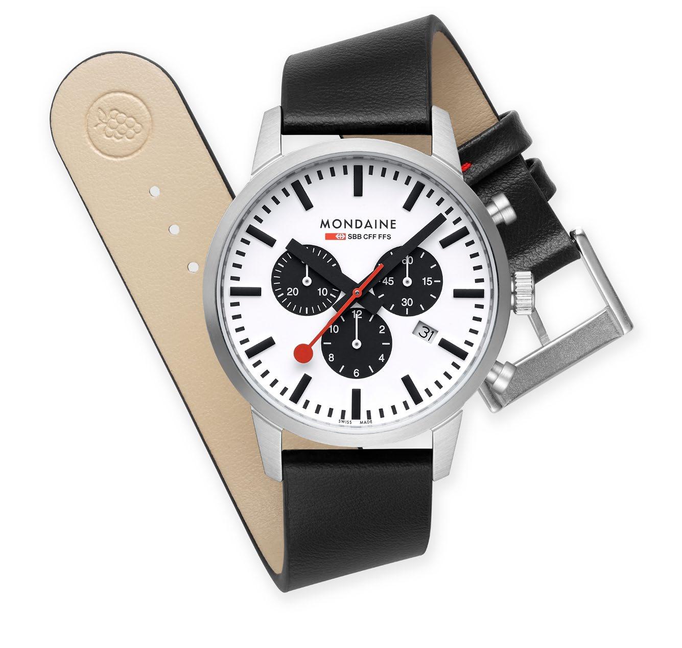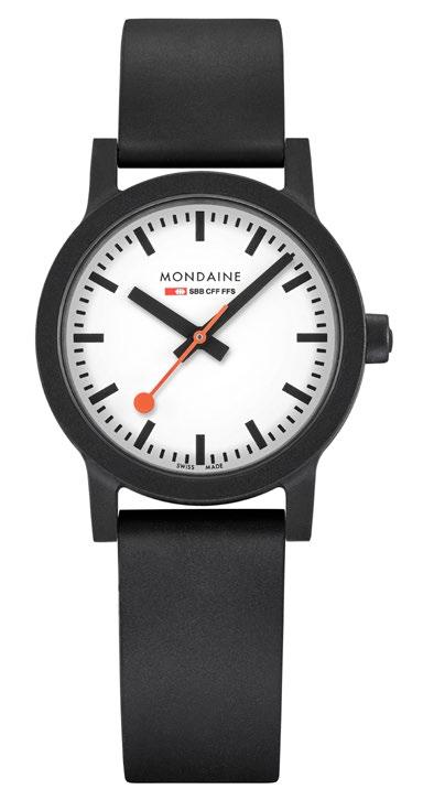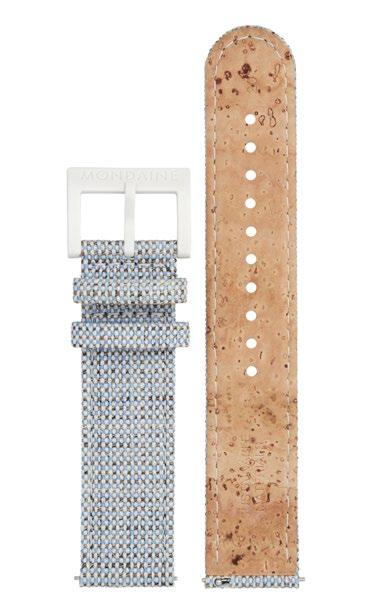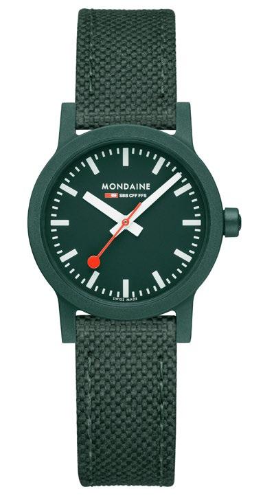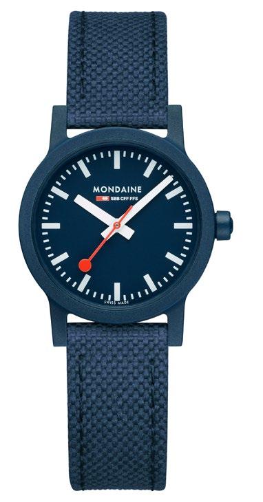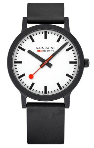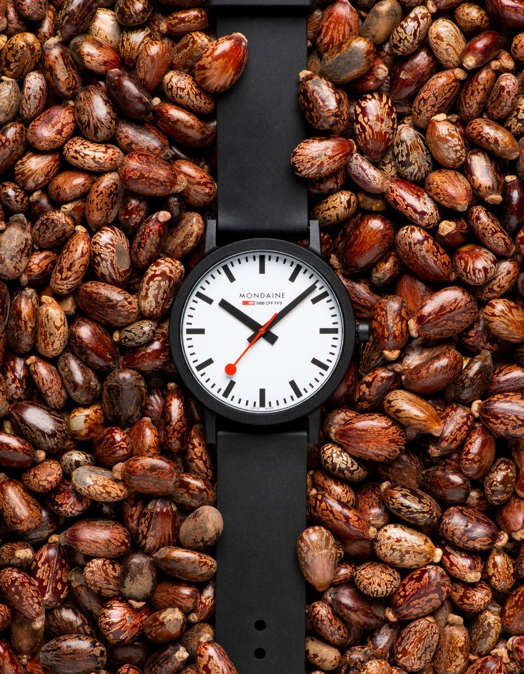 MONDAINE honors the anniversary of the Swiss Railway clock. essence collection was updated with 100% vegan eco-friendly strap made from cork lining and textile from recycled PET bottles, with a quick-change enhancement. 2019