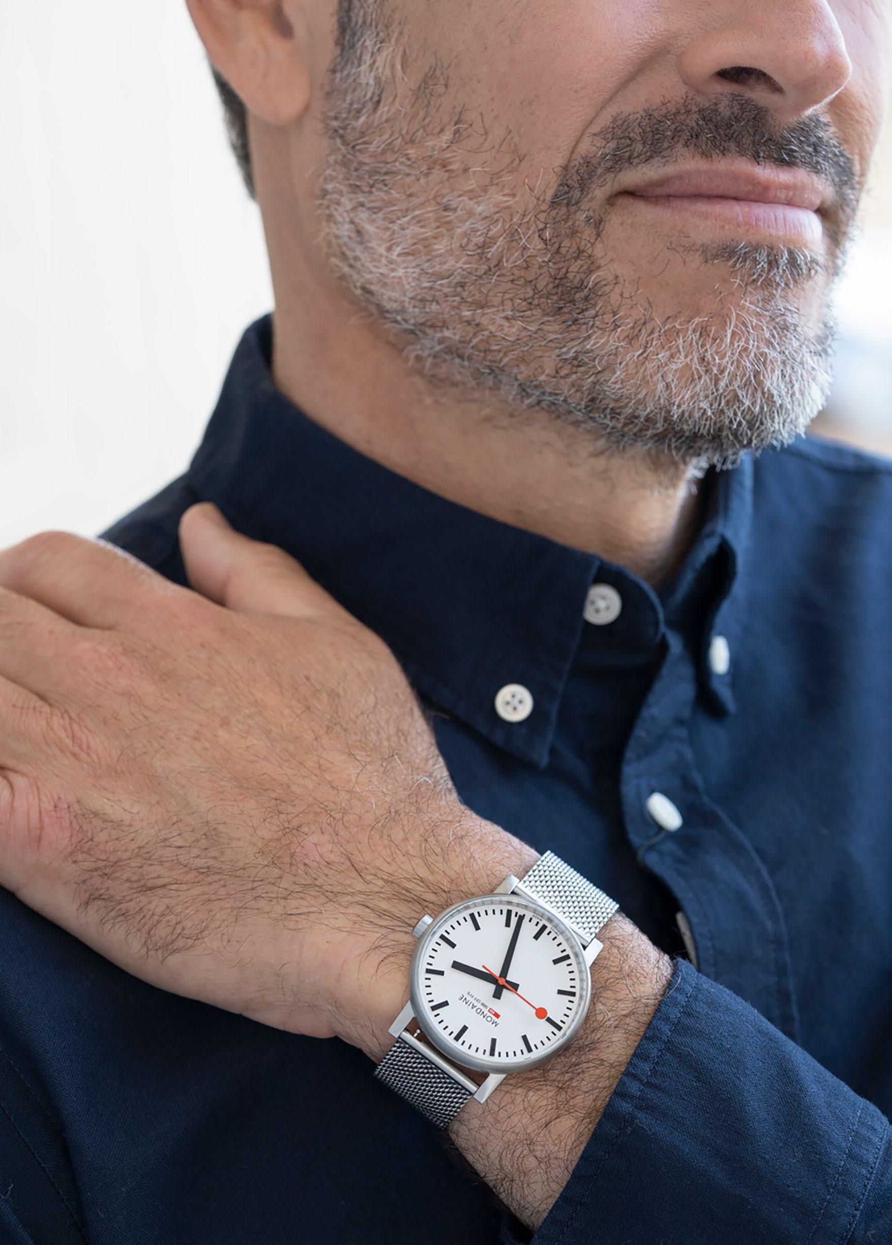 MONDAINE watches highlight Swiss excellence in both quality and design. Our minimalist aesthetic , clear and easily readable face, distinctive hands, and renowned red seconds hand have earned us global recognition. The MONDAINE SBB collection, featuring the iconic design of the Official Swiss Railways Clock, is instantly recognizable and embodies modern Swiss heritage. Invented, conceived, and crafted in Switzerland, MONDAINE timepieces are made for the world.