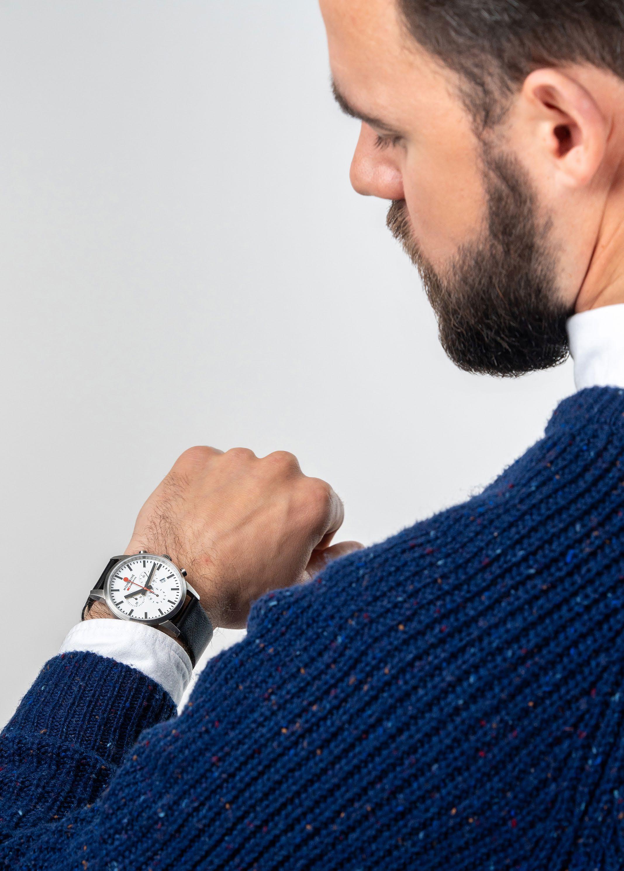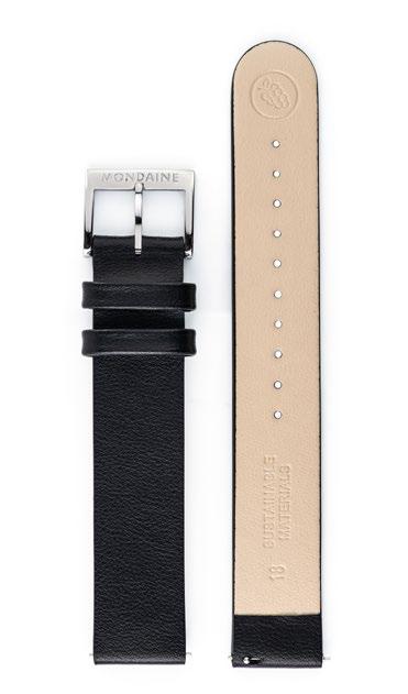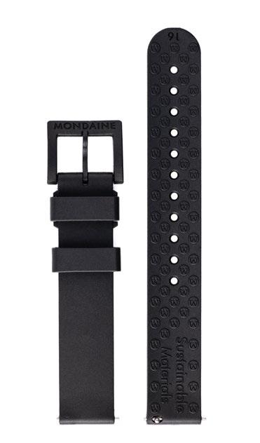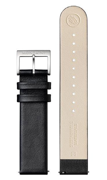 In 2020, we became one of the first watch companies worldwide to be comprehensively CO₂ neutral for scope 1, 2, 3 of the Greenhouse Gas Protocol (GHG), a milestone we repeated in 2021. In 2022, MONDAINE switched to vegan grape leather straps, furthering our sustainability commitment to long-term CO₂ neutrality.