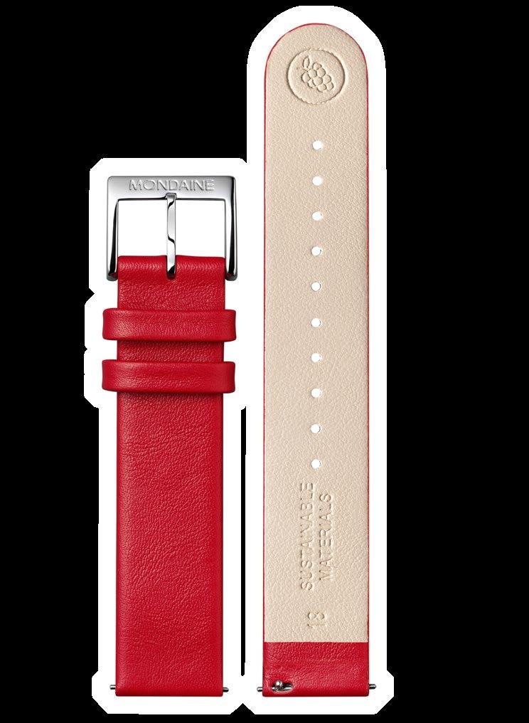 Red Silver, polished Vegan grape leather strap, red lining QR