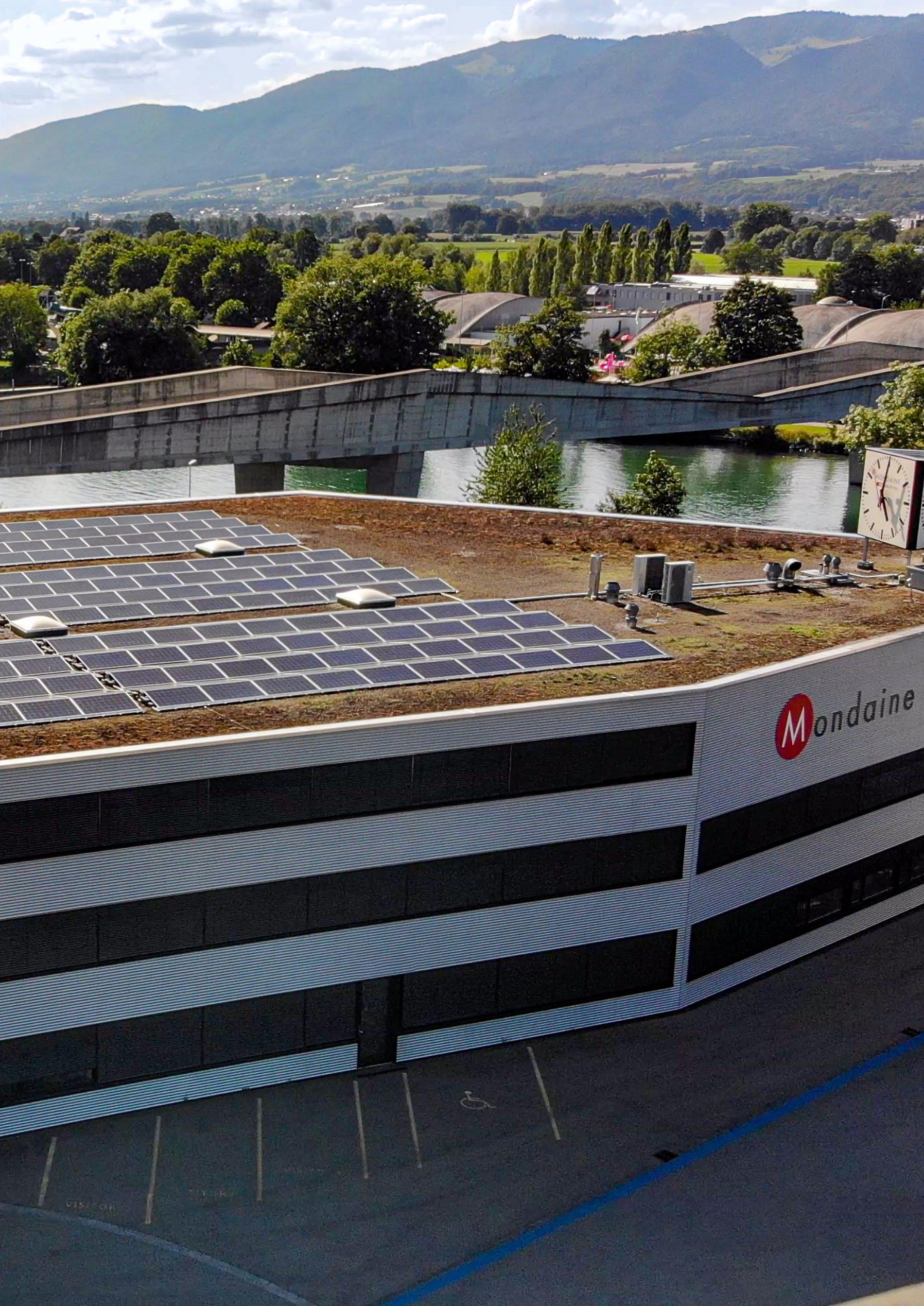 Since September 2019, Mondaine Watch Ltd. has been operating a photovoltaic solar system on the roof of our own factory in Biberist, Switzerland. The electricity generated from solar energy covers up to 80% of our total annual needs, the remaining amount of energy is covered by green energy, provided through a hydroelectric power plant.