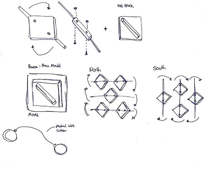 For the North and West facade prototype, I experimented with clay to create a diamond-shaped panel that aligns with Melbourne’s sun path. It was also used to comprehend the different production procedures needed to create a clay panel on a practical level.