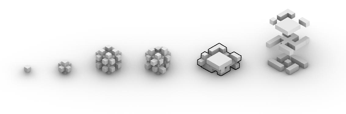 The project is a deep exploration inspired by the versatile shape of a simple Lego brick, aiming to transform an abstract form into functional spaces for a community hub. Through experimentation with patterns, scales, rotations, and more, the project pushes the boundaries of the cuboid shape. Embracing the playfulness inherent in Lego, the design invites audience exploration, utilizing a multistory grid-like structure with interactive elements like spiral staircases and winding paths.
