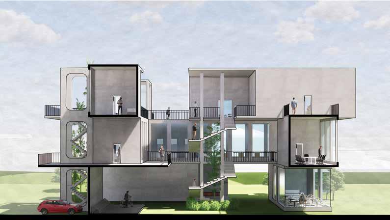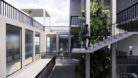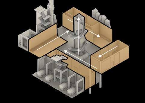 The floor plans of The Stack embody a dynamic and layered approach to spatial design, where form and function come together to create a seamless architectural journey. Each level is thoughtfully crafted to enhance the sense of movement and discovery, with open circulation routes and carefully framed views. The design prioritises flexibility, allowing spaces to adapt to the changing needs of the community. The interplay of solid and void, along with strategically placed staircases and transitional zones, encourages users to navigate the building intuitively, fostering engagement with both the architecture and its surroundings. By embracing the modularity of the LEGO-inspired concept, the floor plans create a rhythm of interconnected spaces that invite exploration, blurring the boundaries between public and private, indoor and outdoor, and static and dynamic experiences.