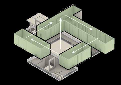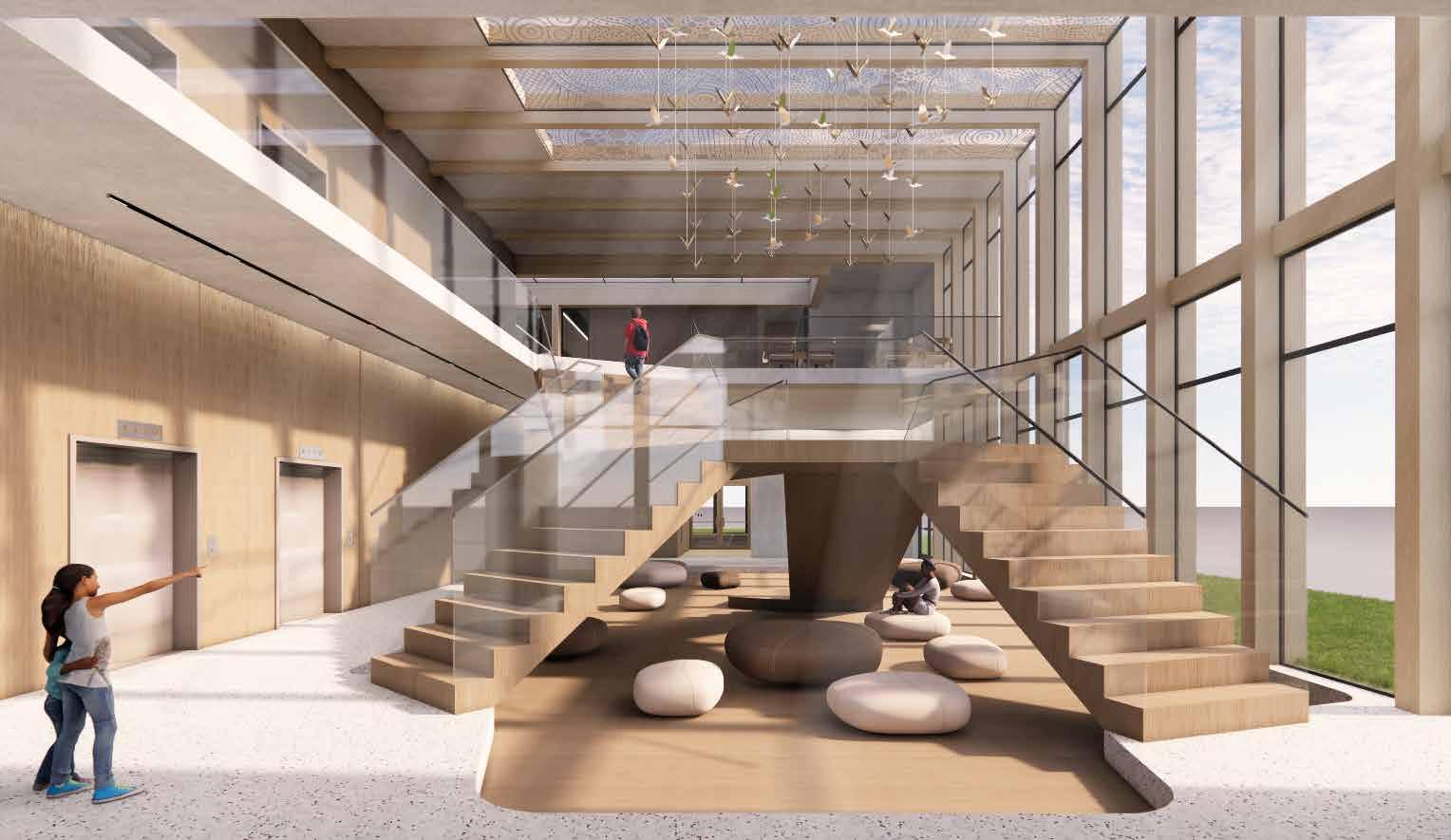 Large corridors and voids help stimulate the exchange of hot and cold air throughout the structure.