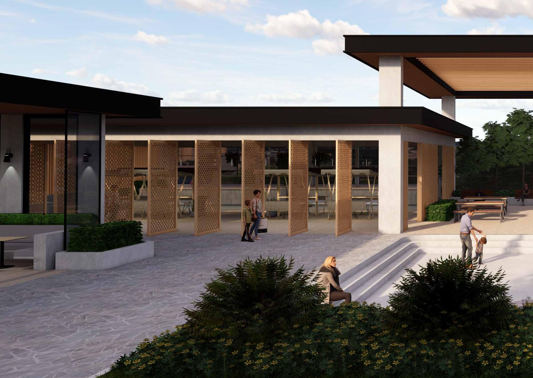 As guests follow this winding path, they are guided through various sections of the complex, each offering a unique experience. At every turn and corner, there is something new to discover, adding depth to their visit. This deliberate design encourages engagement and interaction, allowing visitors to fully appreciate the multifaceted nature of the sustainable food hub.