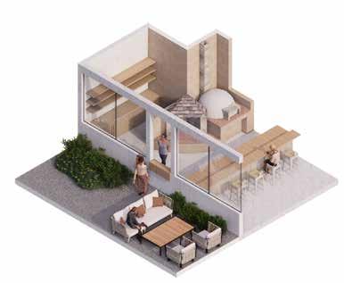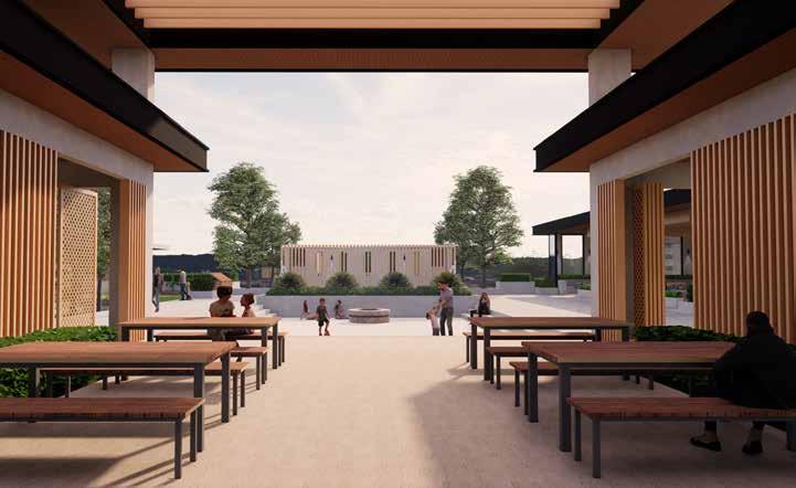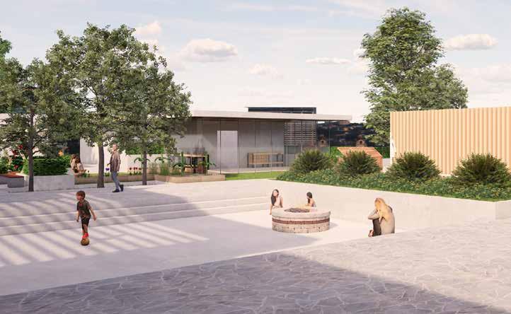 The event space at the centre of The Terrarium is designed as a welcoming and adaptable gathering area, encouraging interaction between visitors and the surrounding landscape. With an open layout, it accommodates various outdoor activities, including a central fire pit where people can gather, unwind, and connect in a relaxed setting. More than just a recreational spot, the space serves as a key linking element, seamlessly connecting different areas within the compound to create a cohesive and engaging environment. By integrating natural and built elements, the design promotes fluid movement, social interaction, and a deeper connection with the outdoors, reinforcing the project’s vision of an immersive and harmonious public space.