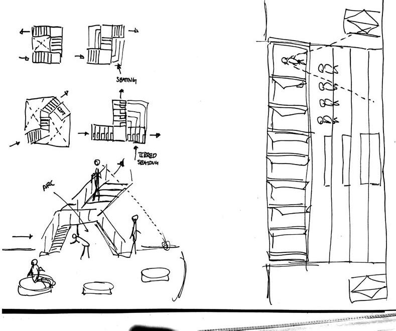 Since this space is meant for public use beyond just a stairway, I’ve also integrated a seating area below to promote interaction and a sense of community.