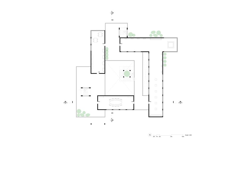 As we ascend to the second floor, the design changes to a semi-private configuration to balance individual privacy and communal interaction. Providing a cosier, more narrowly focused setting for particular programming, like a library, conference rooms, or an exhibition area.