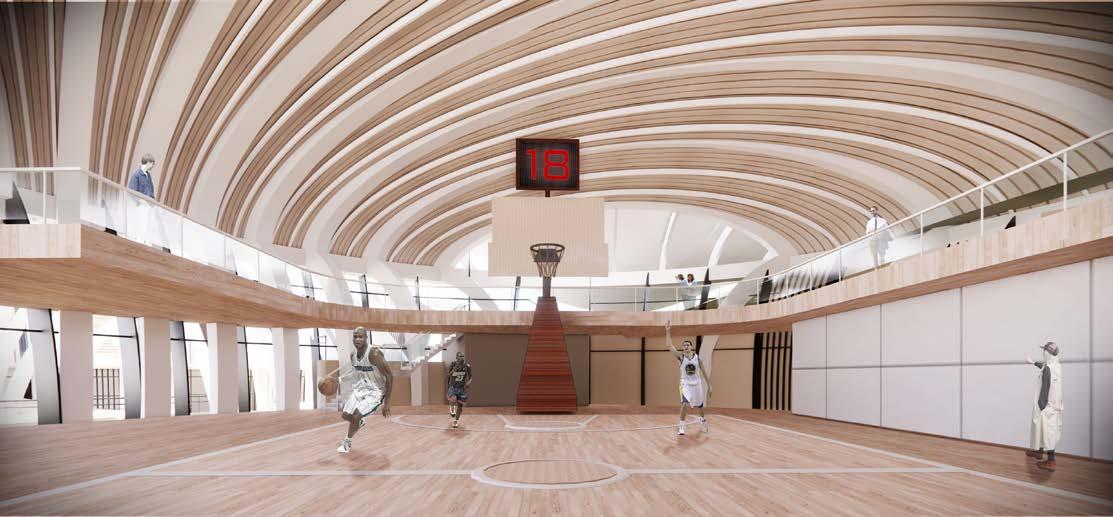 The architecture can provide seats for more than 5000 audience and space for the athletes to train in the training hall. It's also required to deal with the height difference of over 14 meters in the site.
