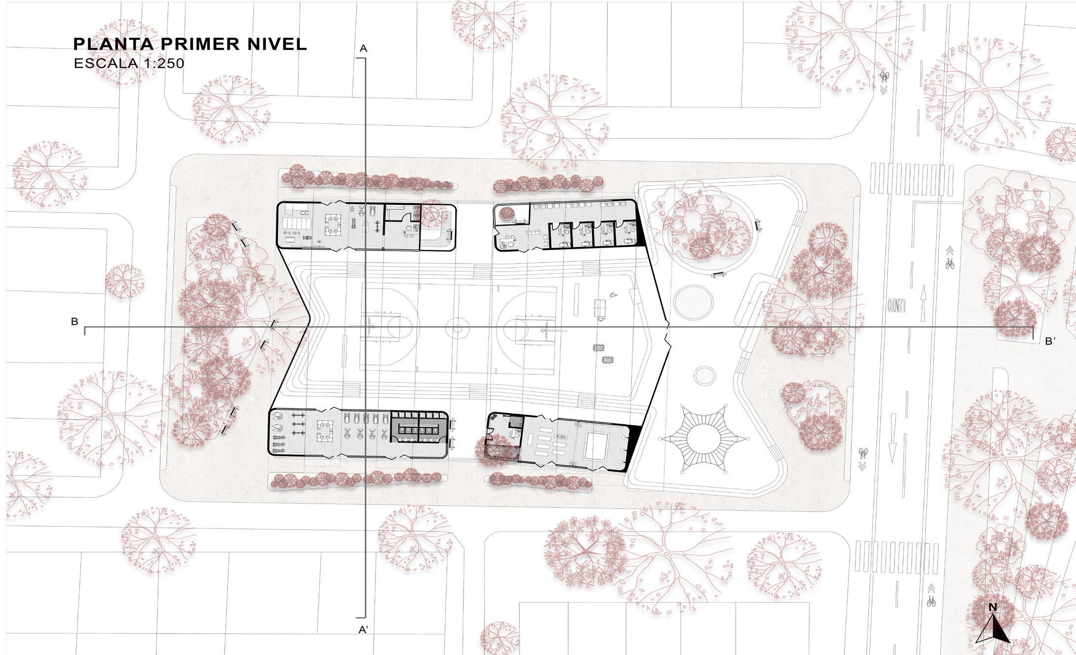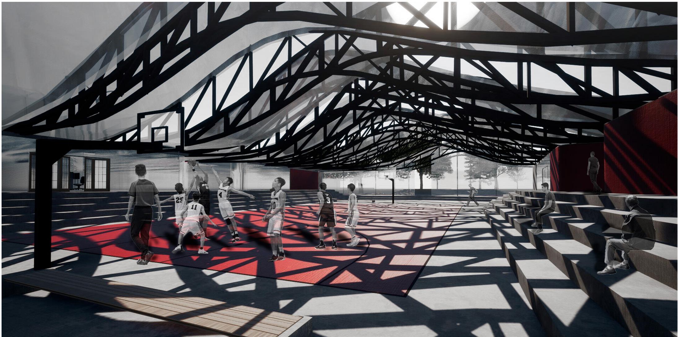 El proyecto se ubica en Cerro Navia, específicamente en Av. La Estrella. Se ha llevado a cabo un análisis urbano que destaca una costura urbana deportiva, evidenciada por la abundancia de canchas en la zona. Uno de los tramos identificados presenta la problemática de islas de áreas verdes y canchas segregadas por cuatro avenidas principales de alto flujo. La estrategia propuesta consiste en una extensión y apertura hacia la avenida principal, generando un amplio espacio público. Este espacio estará definido por cubiertas curvas con diferencias de alturas, albergando en su parte inferior un centro deportivo y de terapia física. El diseño incluye una cancha central con dos barras que albergan programas tanto deportivos como de terapia física. Esta propuesta busca integrar y mejorar la conectividad del área, brindando un espacio multifuncional para el bienestar de la comunidad.