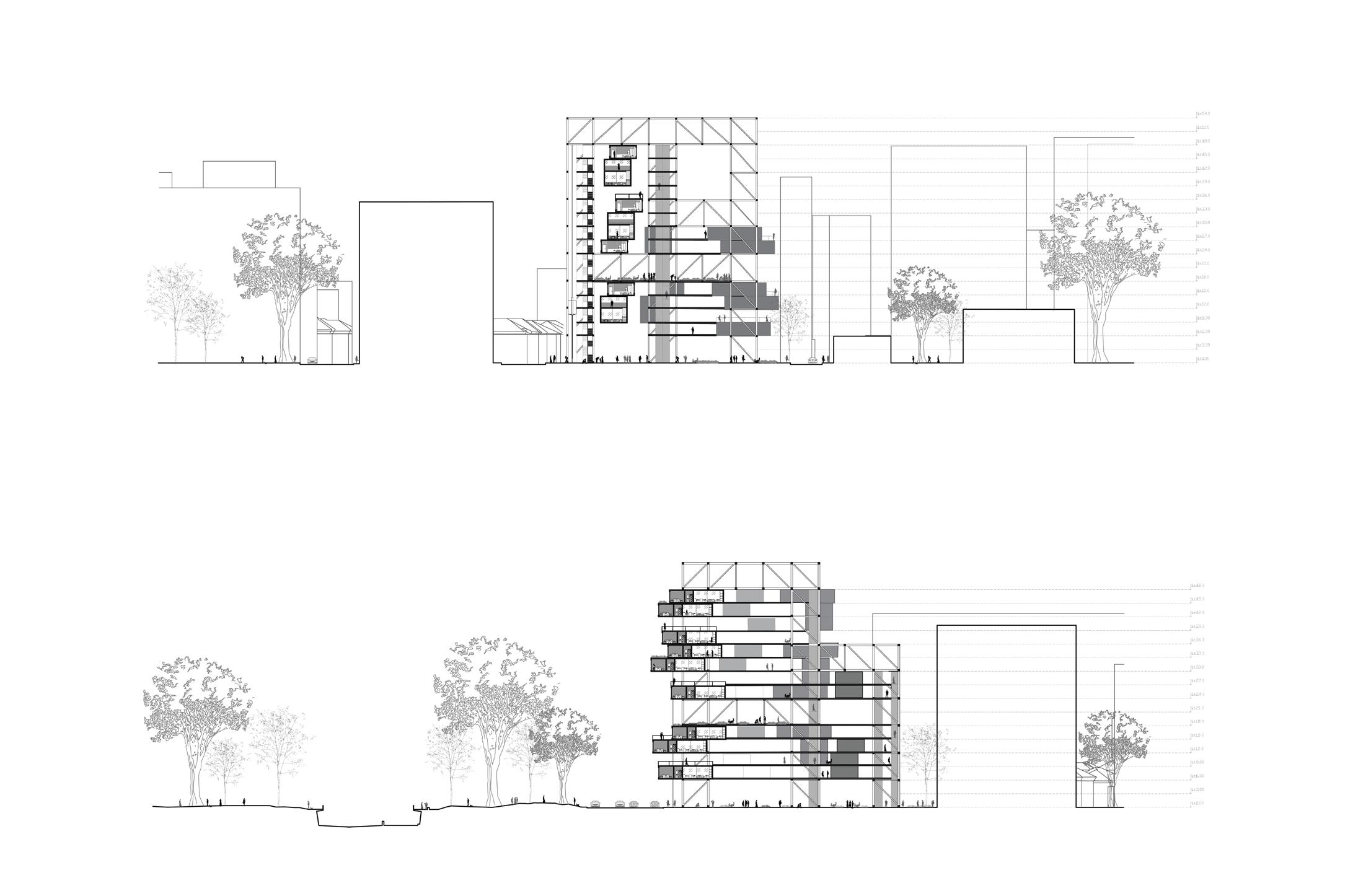 Este proyecto redefine la entropía urbana al plantear la pregunta central: “¿Cuál es la medida de entropía justa para habitar?” Utilizando una estructura innovadora que sostiene viviendas colgadas, se crean vacíos semipermeables que permiten la entrada de entropía urbana exterior y generan esquinas perimetrales como núcleos de conexión vertical.