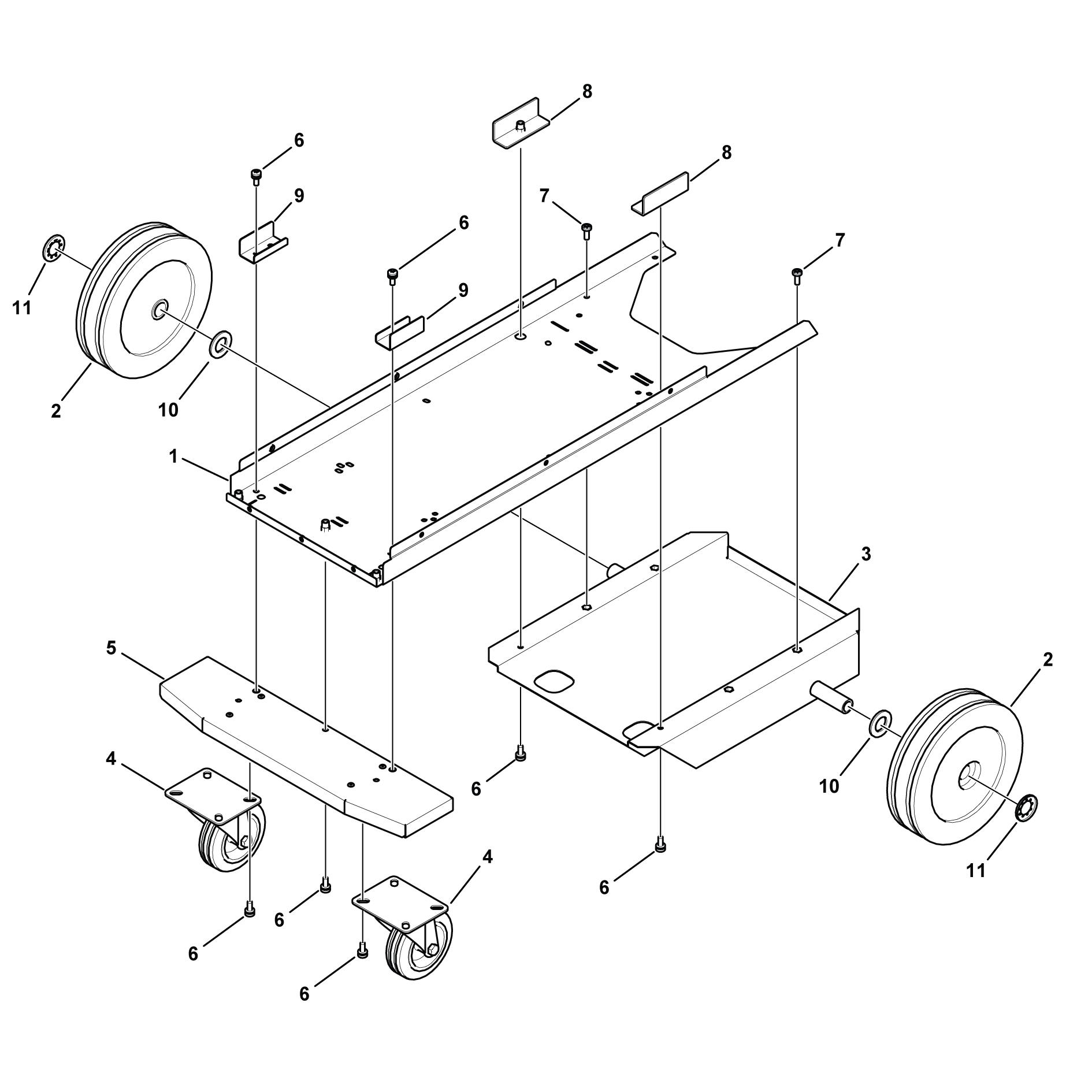 Item Qty Orderingno. Denomination Notes C 1 1 Basemetalcaseassy 2 2 0349309845 Wheel SR200,alsoorderpos.11 3 1 Gascylindershelf 4 2 0455467001 Castorwheel D100H125 5 1 Frontwheelsbracket 6 15 Screw MRTcombi,M6×16 7 4 Screw MRT,M6×16black 8 2 Reinforcementassy 9 2 ReinforcementRHS 10 2 Plainwasher 20-200HV-A2K 11 2 0192859026 Lockingwasher TypeP