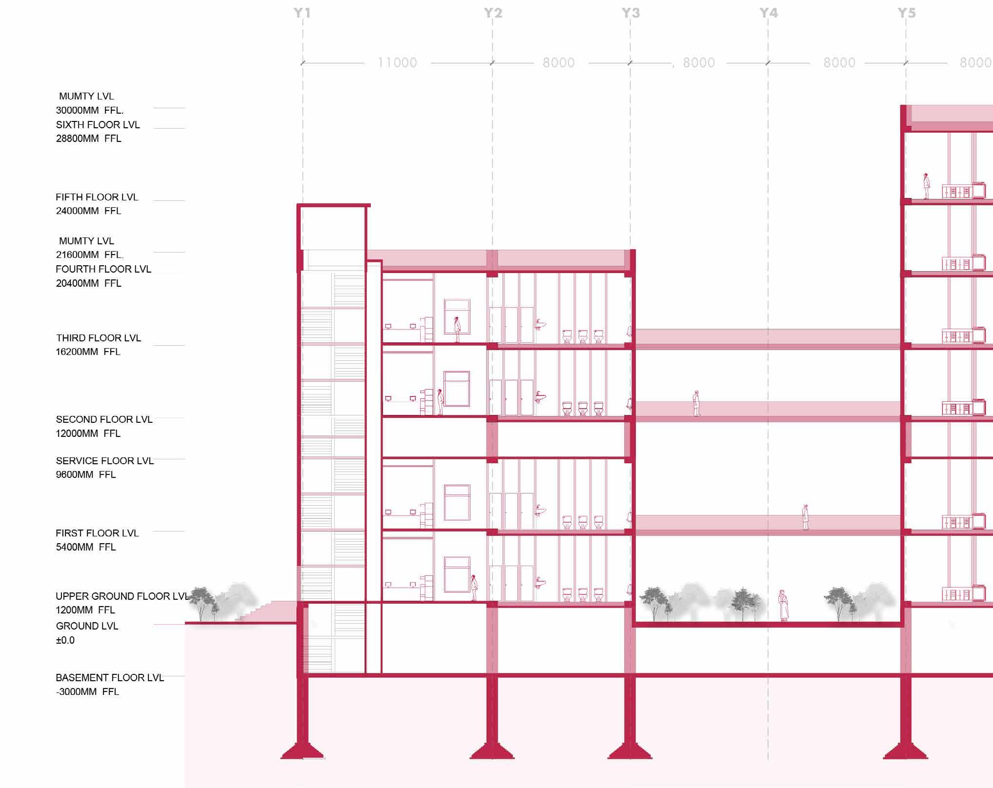 01 02 03 04 05 06 07 08 09 A B C D E F G UP DN M WIDE PASSAGE UP DN LIFT WELL PATIENT/ DOCTOR/NURSE ELEVATOR SERVICE ELEVATOR GARBAGE/BIOMEDICAL WASTE ELV. DIRTY ELEVATOR FOR OT SUPPLY CLEAN ELEVATOR FOR OT SUPPLY VISITOR ELEVATOR STAFF ELEVATOR DOCTOR ELEVATOR OPD +1.3M. (FFL) UPPER GROUND FLOOR + 5.5M. (FFL) FIRST FLOOR + 9.7M. (FFL) SECOND FLOOR + 13.40M. (FFL) THIRD FLOOR 00 EXTERNAL ROAD LEVEL -10.7M. (FFL) BASEMENT 02 -6.7M. (FFL) BASEMENT 01 -2.7M. (FFL) LOWER GROUND FLOOR +20.1M. (FFL) FIFTH FLOOR +23.625M. (FFL) SIXTH FLOOR +17.40M. (FFL) FOURTH FLOOR -14.7M. (FFL) BASEMENT 03 +27.325M. (FFL) SEVENTH FLOOR +30.85M. (FFL) EIGHTH FLOOR +34.375M. (FFL) NINTH FLOOR +37.90M. (FFL) TENTH FLOOR +44.95M. (TOS) TERRACE FLOOR +.450M. (FFL) INTERNAL ROAD LEVEL +41.425M. (FFL) ELEVENTH FLOOR +47.95M. TOP OF MUMTY -1.9M. (TOS) 01 02 03 04 05 06 07 8500 9000 8500 8500 9000 8500 MAX VIKRANT HOSPITAL, SAKET, DELHI Internship Work