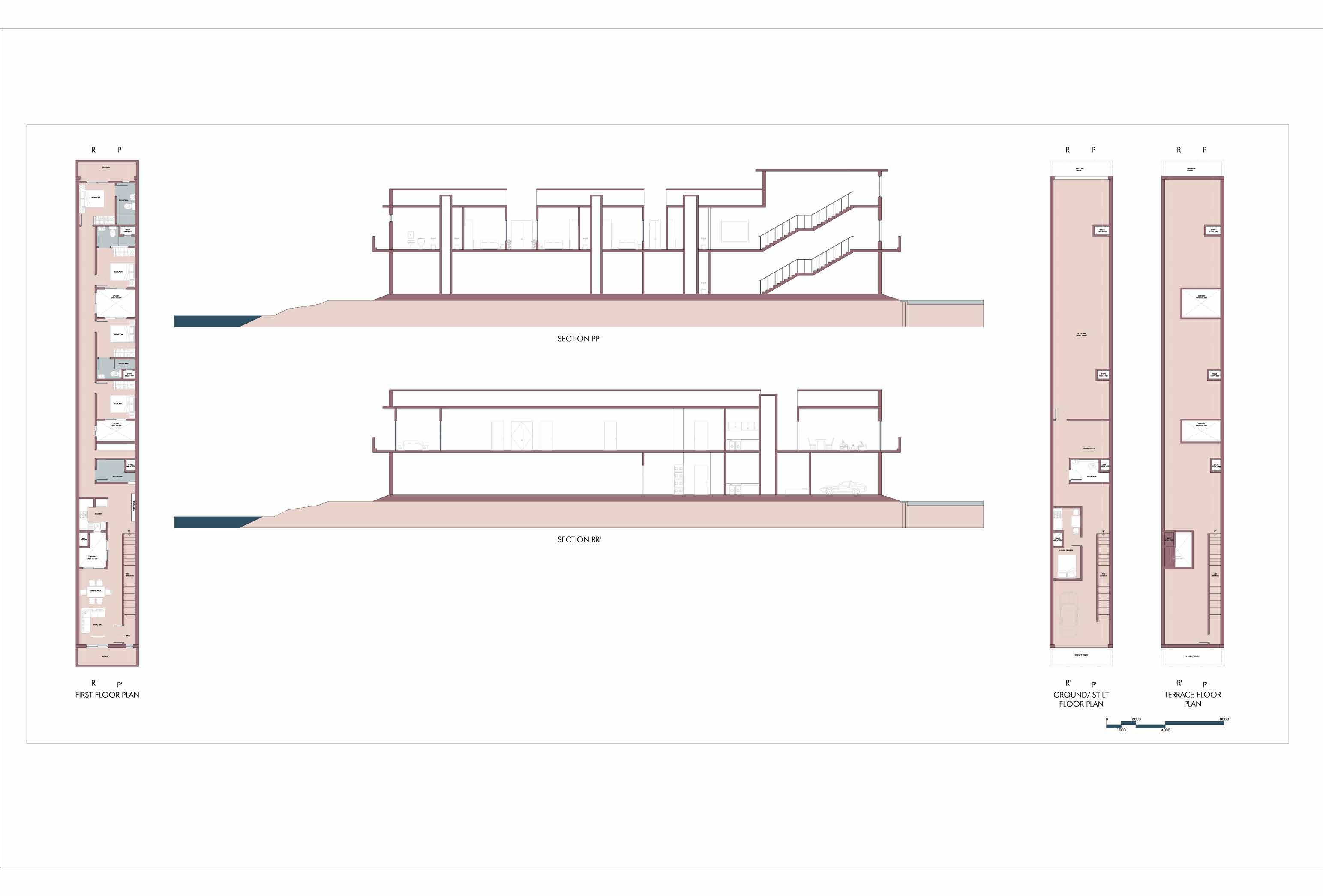 A 1 2 3 4 5 7 8 9 6 B 8 9 10 PAX 13 PAX ENTRY EXIT LVL + 2100 MM LVL +600 MM LVL +600 MM LVL -3000 MM LVL + 1650 MM RAMP SLOPE 1:10 RAMP SLOPE 1:10 RAMP SLOPE 1:10 SLOPE 1:10 PH 02 02 01 01 B A D C FOYER LIFT LOBBY RECEPTION CONVENIENCE SHOPPING MULTI-PURPOSE LANDSCAPE DN STORAGE TOILET(MALE) MULTI-PURPOSE TOI.(F) 2930 2800 FIRE TOWER 7400 X 3800 9800 X 11600 7400 3800 1680 1850 ENTRY LVL + 2100 MM INTERNAL ROAD INTERNAL ROAD DN UP GROUND / FLOOR PLAN SCALE 1:200 GROUND COVERAGE AREA DIAGRAM SCALE 1:200 GROUND FLOOR FAR AREA DIAGRAM SCALE 1:200 01 01 B A D C MULTI-PURPOSE HALL 12100/6900 10050/5350 RECEPTION MULTI-PURPOSE HALL MULTI-PURPOSE HALL LIFT LOBBY FIRE TOWER TOI. (M) 4900 3400 TOI.(F) 1675 X 1450 LVL + 7500 MM A B C D E F 01 02 03 04 05 06 07 08 DECK 2875 M WIDE SWIMMIMG POOL PRE-FUNCTION A 1 3 4 5 7 8 6 10 11 12 17 FIRST FLOOR PLAN SCALE 1:200 FIRST FLOOR AREA DIAGRAM SCALE 1:200 LIFT LIFT A B C D E F 01 03 04 05 06 08 A D C 02 02 01 01 BALCONY 2.25 WIDE BALCONY 1.1 WIDE TYPICAL FLOOR PLAN SCALE 1:200