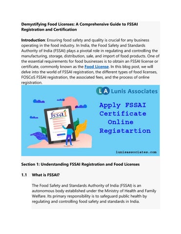 Section 1: Understanding FSSAI Registration and Food Licenses