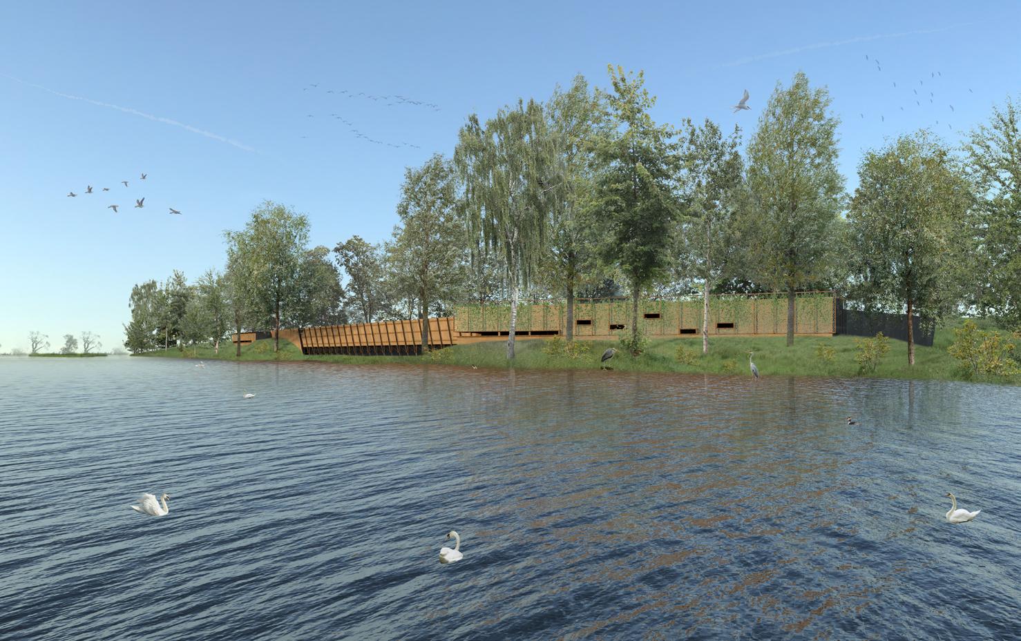 Durant la Première Guerre mondiale, autour de l’étang de Haut et de Cléry-sur-Somme, de très nombreuses tranchées ont été creusées. Elles ont physiquement disparu mais ont laissé des cicatrices dans le sol et dans les mémoires. J’ai choisi de référencer cette Histoire en créant de nouvelles tranchées pour pouvoir observer sans être vu, des tranchées sorties du sol et dont la finalité n’est pas belliqueuse mais pacifique : observer les oiseaux.