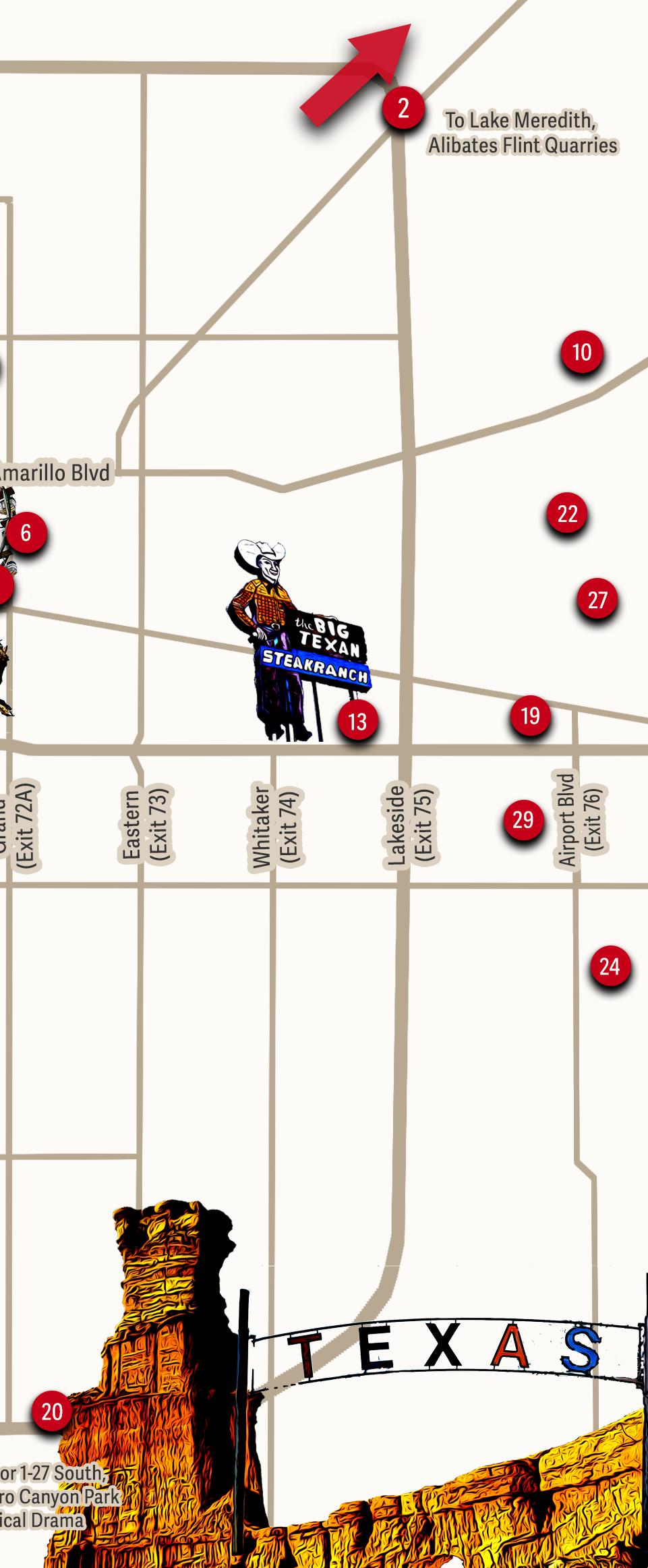 Use this guide to navigate your way around our communities and get to know our friendly faces and points of interest. Refer to the map at the end of this guide or connect with VisitAmarillo.com on your computer or mobile device.