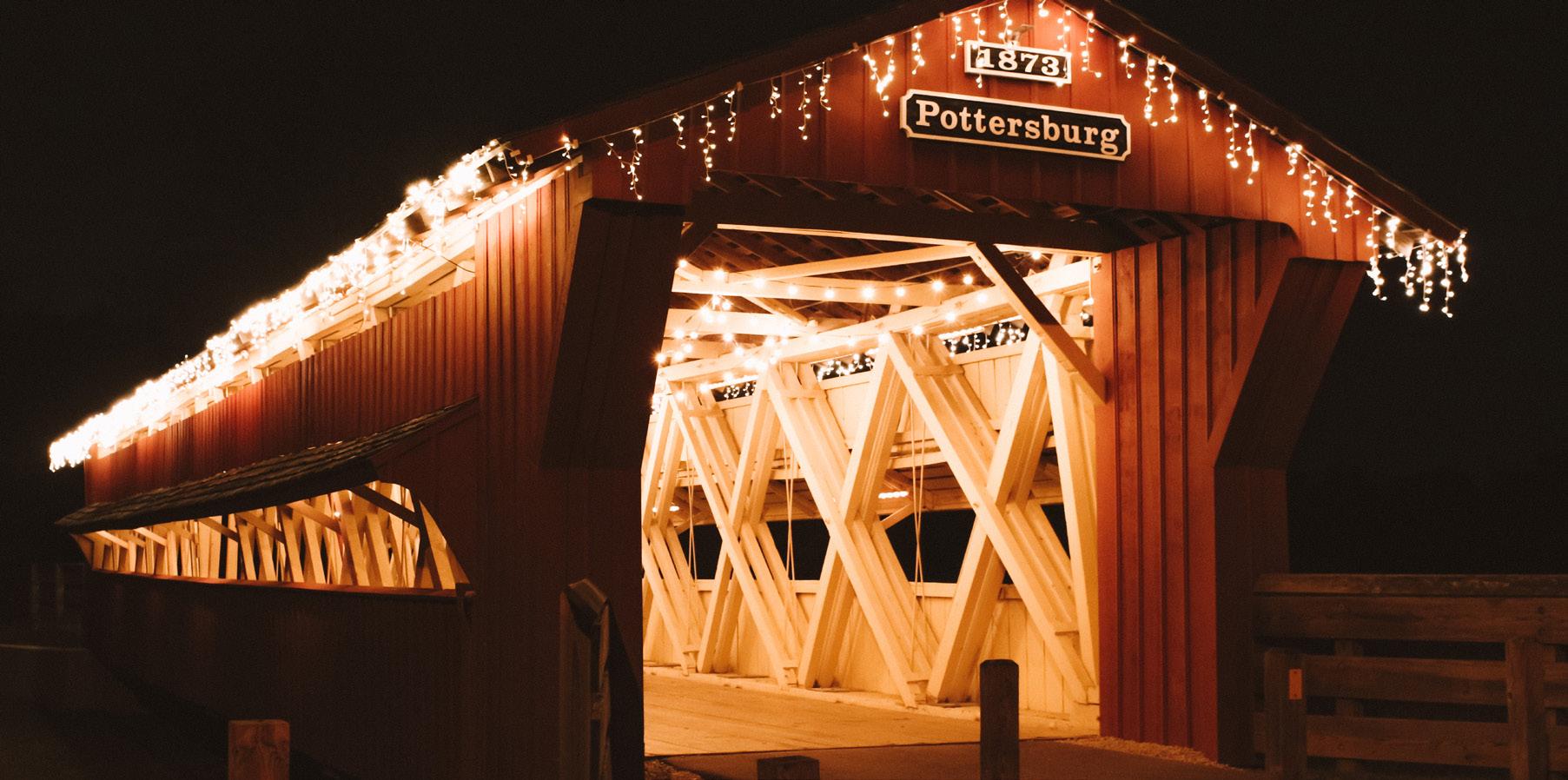 See the Bigelow and Pottersburg Covered Bridges dressed in holiday lights with Merry and Bright Bridges These twinkling beauties could quite possibly be the most Instagram-worthy backdrop of the season. Available November – January.