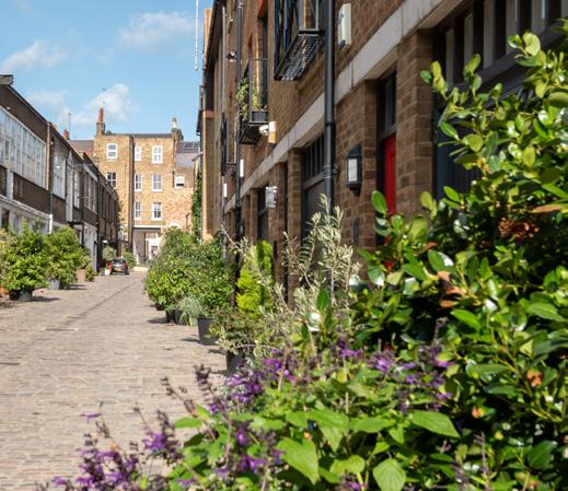 • Mews streets are incredibly social, with many having ‘whatsapp’ groups and arranging occasional drinks. The pandemic in 2020 really brought this to the fore when social distancing stopped family and friends gathering, but those living on a mews were able to chat with their neighbours from their front doors and maintain some degree of normal interaction. The communal mews space allows for everyone to put plants and benches in front of their houses and creates a sense of community and mutual respect in the mews.