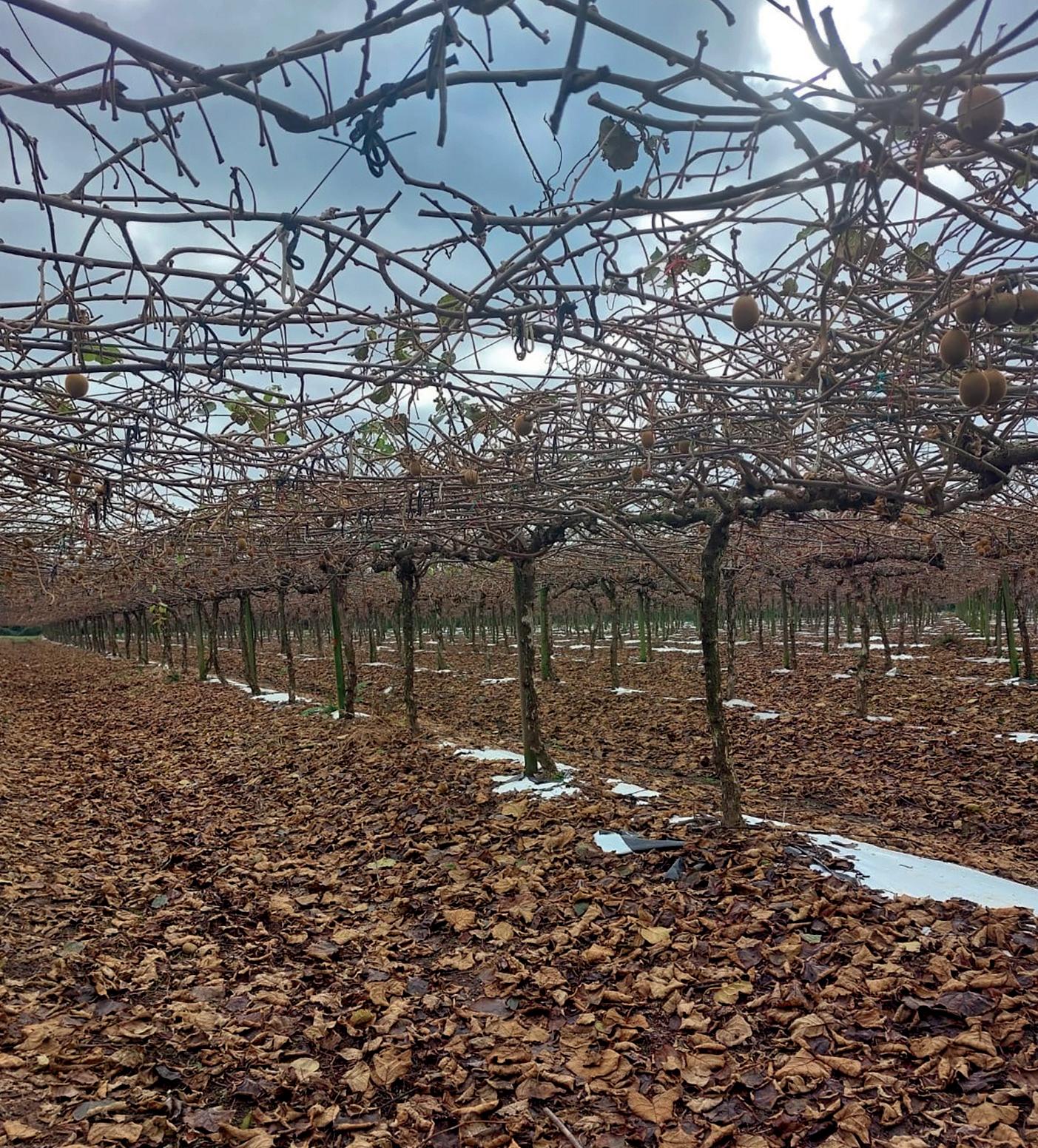 El principal elemento meteorológico que afecta a las plantaciones de kiwi es el viento que reduce la polinización. Por eso, históricamente se han colocado cortavientos verticales. Actualmente, se instalan mallas de tipo carpa, que además reducen el impacto de las heladas y previenen del riesgo de granizo que, si bien no es habitual, sí se ha incrementado durante los últimos años en el entorno de las plantaciones. Las mallas reducen la transmisión de bacteriosis y los productores apuestan por ellas, pese a las dificultades de polinización que ocasionan debido a la ausencia de vientos flojos.