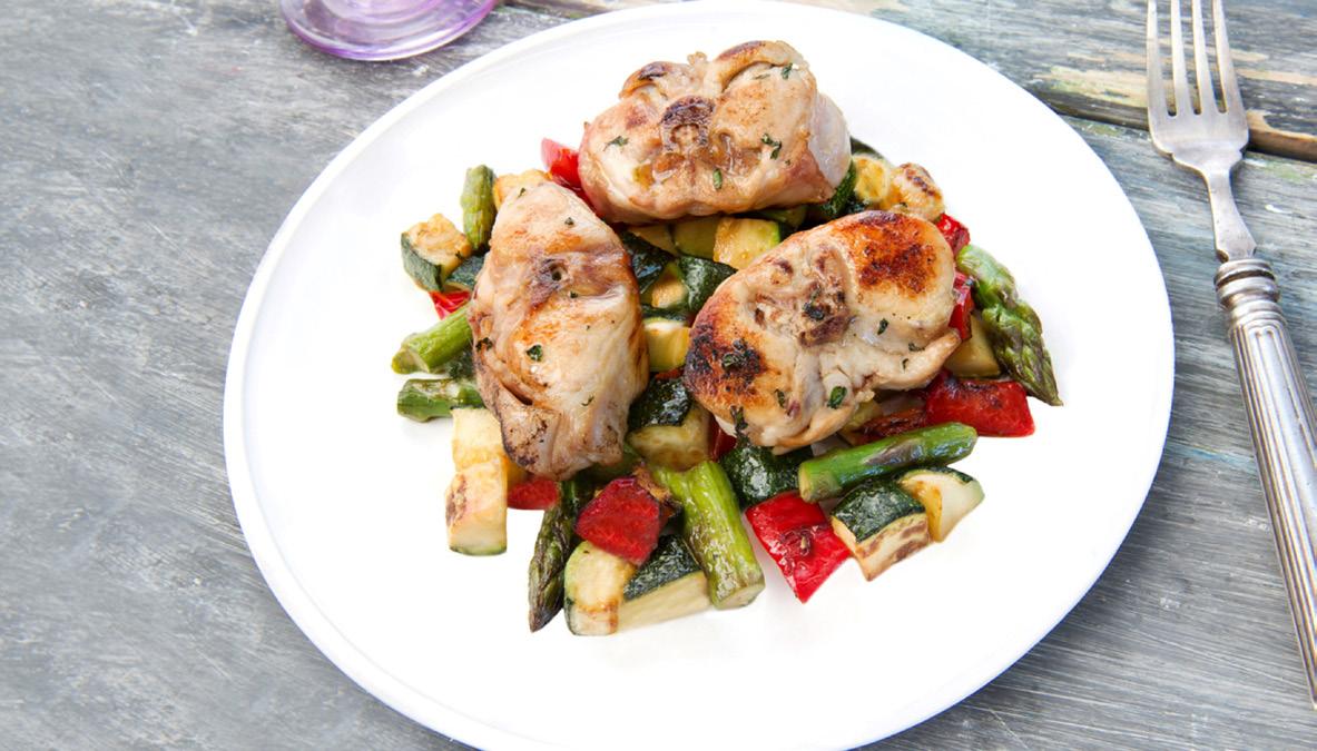 Medallones de conejo con hierbabuena y verduritas