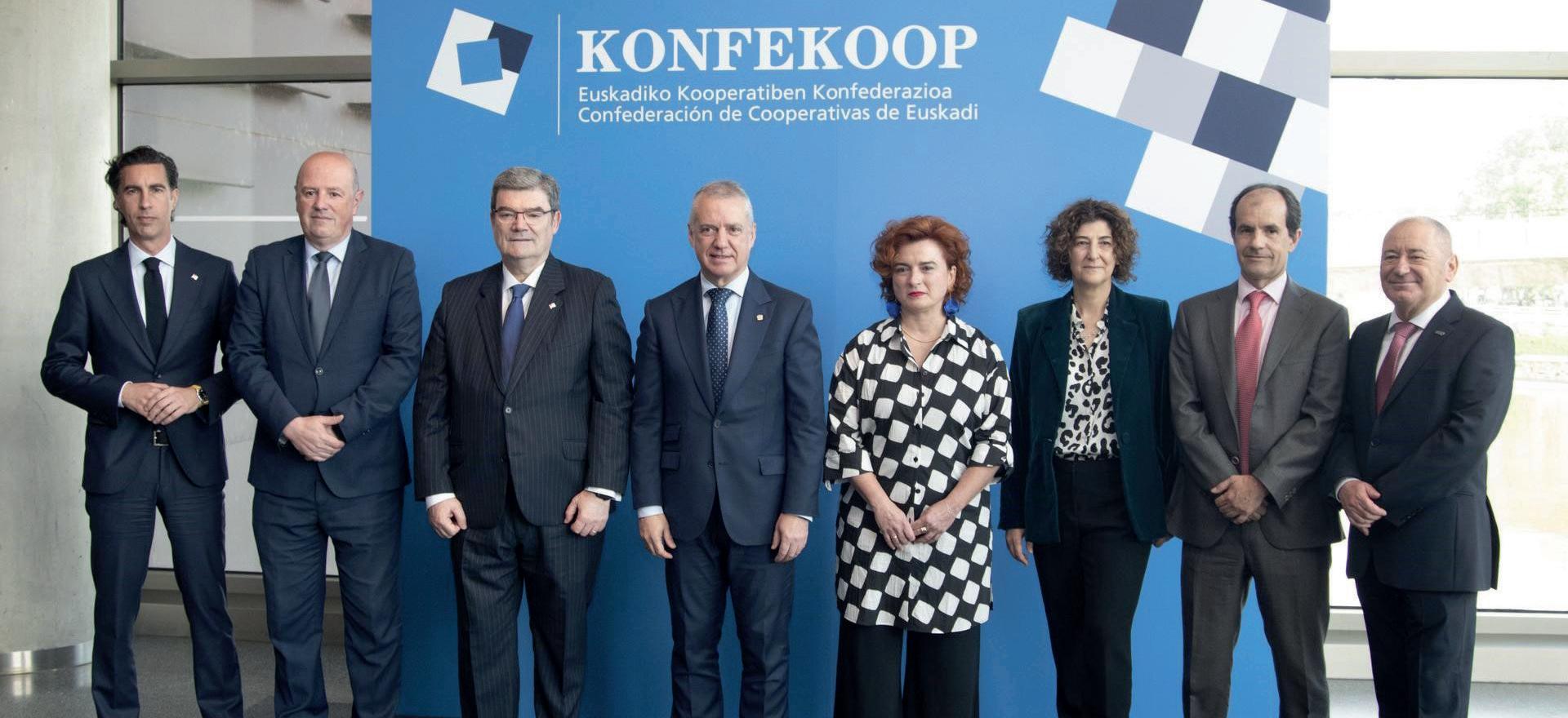 Lehendakariarekin batera, Juan Mari Aburto Bilboko alkateak eta Rosa Lavín KONFEKOOPeko presidenteak parte hartu zuten batzarraren hasiera-ekitaldian, eta amaitzeko,