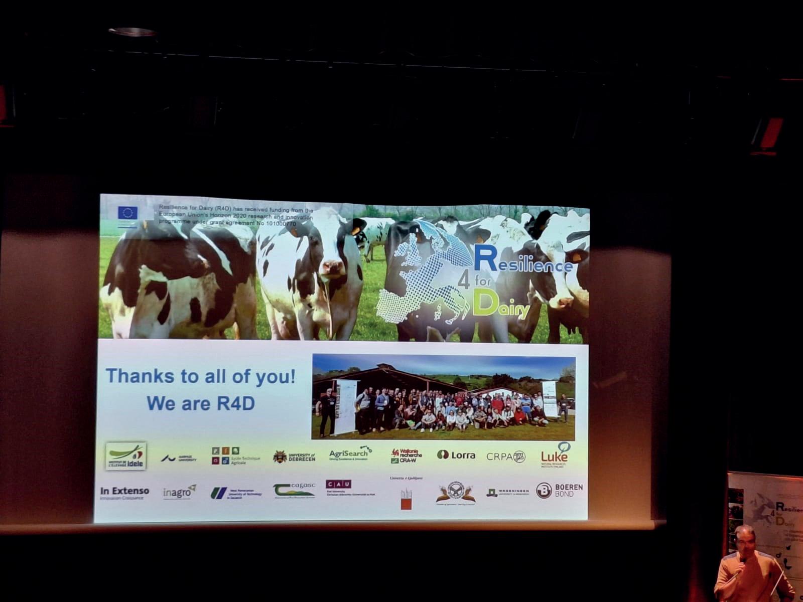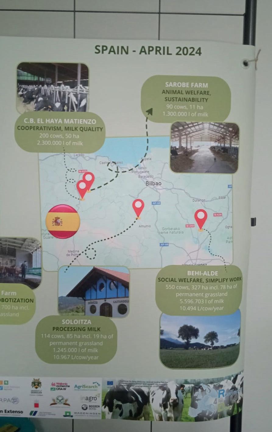 El pasado mes de abril, los 14 países europeos que participan en el proyecto Resilience 4 Dairy (R4D) visitaron Euskadi, para proseguir su búsqueda de las mejores y más innovadoras técnicas de desarrollo sostenible para el sector del vacuno de leche. Se trataba del último viaje antes del cierre del proyecto en Rennes (Francia) y fue organizado por LORRA, con gran ayuda de ABERE. El proyecto está financiado por el programa #Horizonte2020 de la UE. Ochenta y cinco personas entre técnicos, ganaderos o investigadores (de Alemania, Bélgica, Dinamarca, Eslovenia, Finlandia, Francia, Hungría, Irlanda, Irlanda del Norte, Italia, Lituania, Luxemburgo, Países Bajos y Polonia) se trasladaron a Bilbao entre el 9 y el 12 de abril para mejorar las estrategias de negocio en las granjas de leche, así como estimular la interacción positiva entre las comunidades de ganaderos y la sociedad.