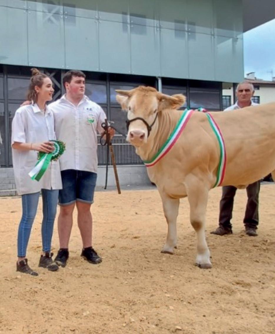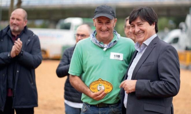 recha golpeó la grupa de IZANE, hija de Warrior Redl y propiedad de Miren Ardeo de la explotación Ardeo de Gatika, certificando de esta manera su triunfo en el Gran Campeonato de Vacas Su excelente sistema mamario, a la postre Mejor Sistema Mamario del concurso, así como su estructura lechera y estilo en pista fueron motivos suficientes para ganar y convertirse en la gran triunfadora del certamen. El premio especial a la Mejor Ganadería también fue a recalar a la explotación Ardeo de Gatika, cuyo propietario Lander Ardeo no podía disimular su satisfacción junto a su familia.