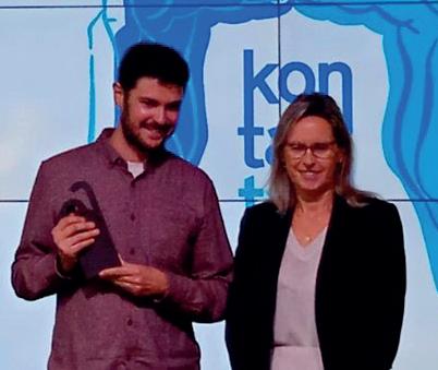 Leire Barañano, directora del centro tecnológico, ha entregado al investigador el premio de 2.000 euros y una escultura del artista Imanol Andonegi Mendizabal.