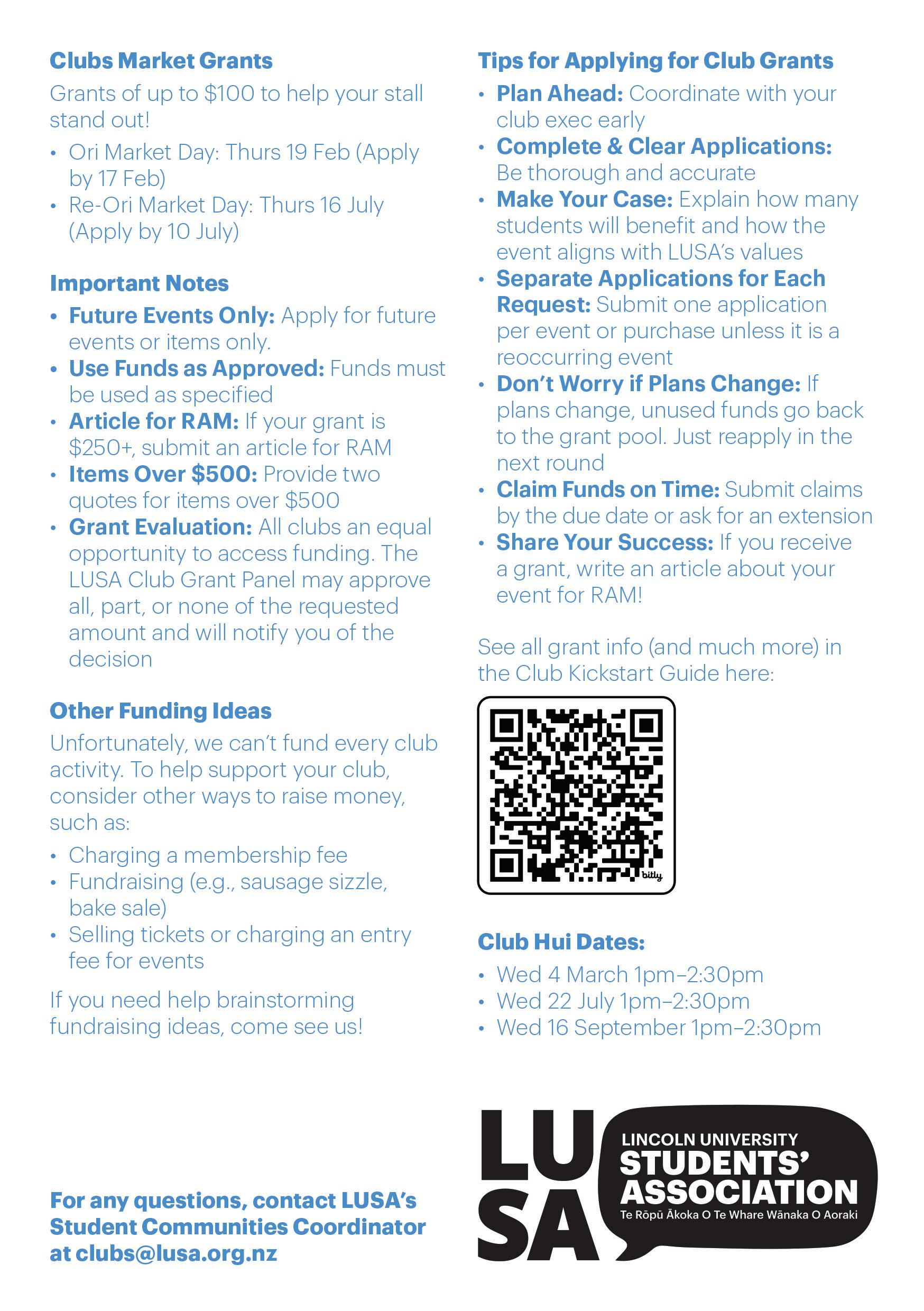 Have an idea or question? Email clubs@lusa.org.nz