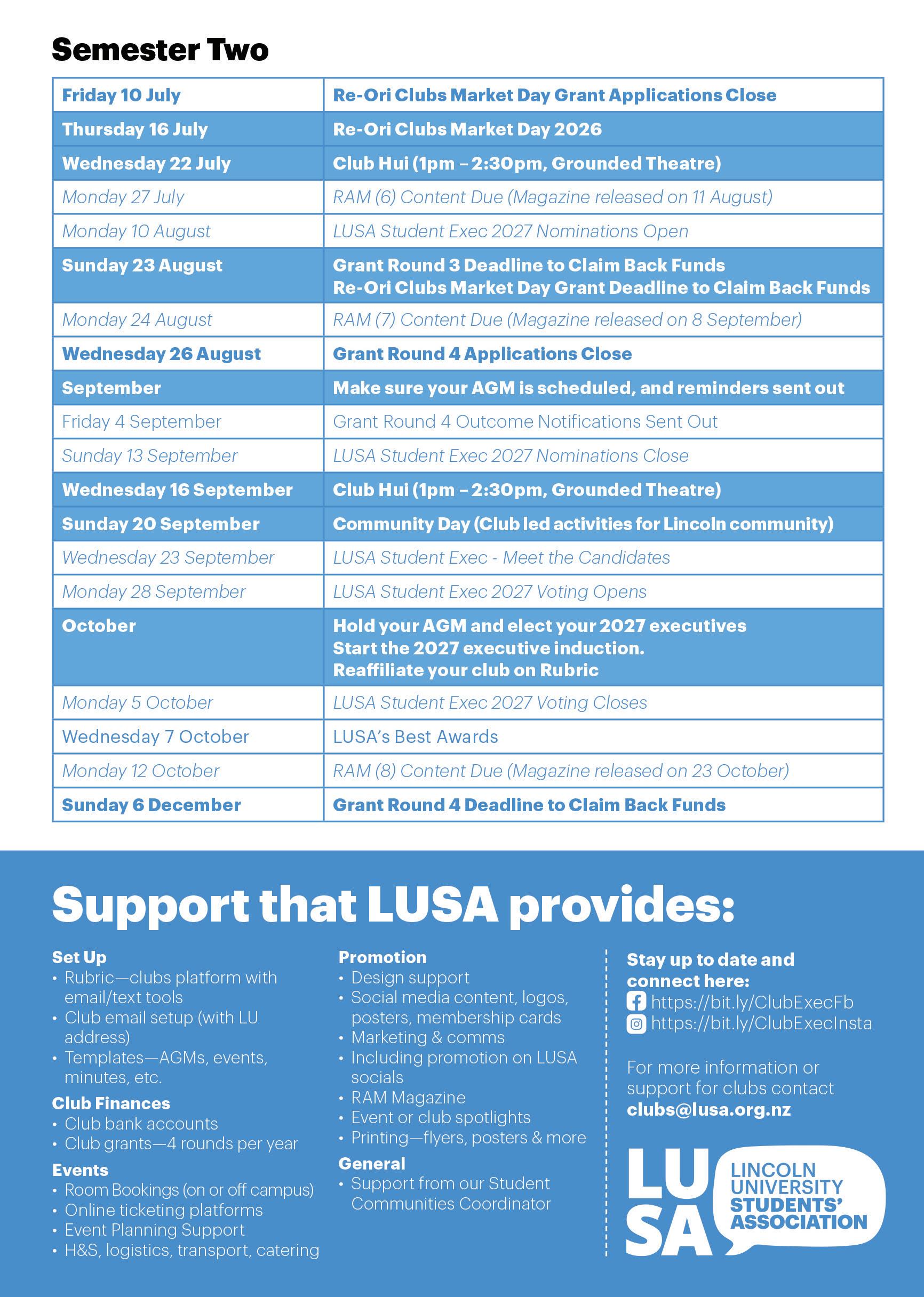 lusa.org.nz/clubs for more info or pop into LUSA.