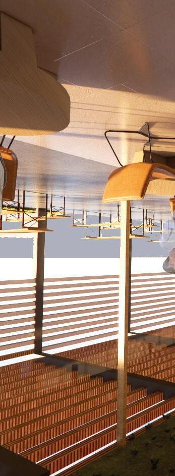 Aqua Harvest seeks to address this by crea ng a mul -func onal building that collects, filters, and stores water while also providing space for agriculture. This innova ve design integrates housing, infrastructure, farming, commerce, and recrea on to offer a holis c solu on to the city’s challenges.