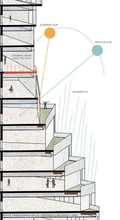 Aqua Harvest seeks to address this by creating a multi-functional building that collects, filters, and stores water while also providing space for agriculture. This innovative design integrates housing, infrastructure, farming, commerce, and recreation to offer a holistic solution to the city’s challenges.