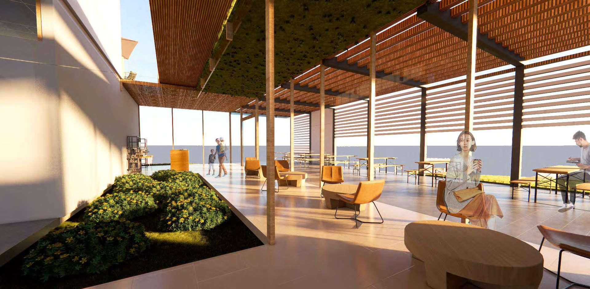 Additionally, we draw inspiration from the park’s natural shade under tree canopies to create a breezy and comfortable atmosphere throughout the space.