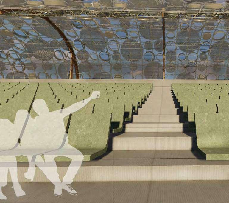THE SITE’S ELEVATED TOPOGRAPHY CREATES RAISED PATHWAYS, OFFERING A UNIQUE EXPERIENCE. THESE PATHS PROVIDE A FRESH PERSPECTIVE ON THE GREENHOUSE TOWER AND OFFER VIEWS OF OTHER PARK-GOERS, GIVING A COMPLETE OVERVIEW OF THE ACTIVITIES HAPPENING BELOW.