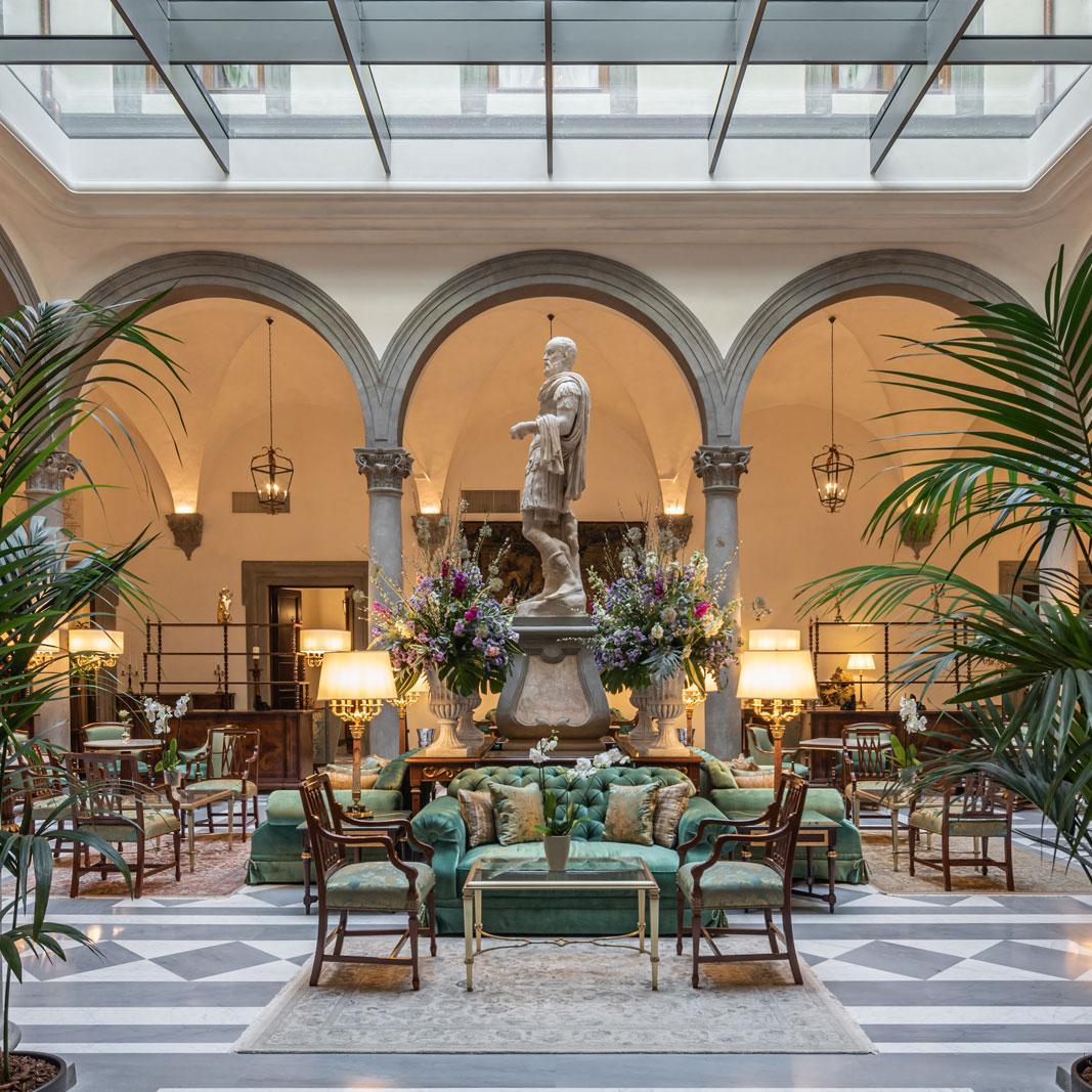 Opened in April 2022, following a meticulous restoration, Palazzo Portinari Salviati is welcoming guests to the artistic heart of Florence. Featuring 14 elegant suites, embellished with its lavish decors and lush furnishings you will be fully immersed in the rich heritage and culture of this Florentine historical residence. In the frescoed Court of the Emperors, a one Michelin Star restaurant “Atto di Vito Mollica”. Completing the experience is the historical Noble floor, an awe inspiring 1,184 sq. ft. frescoed gallery has been designed to host the most iconic suites of the Palazzo.